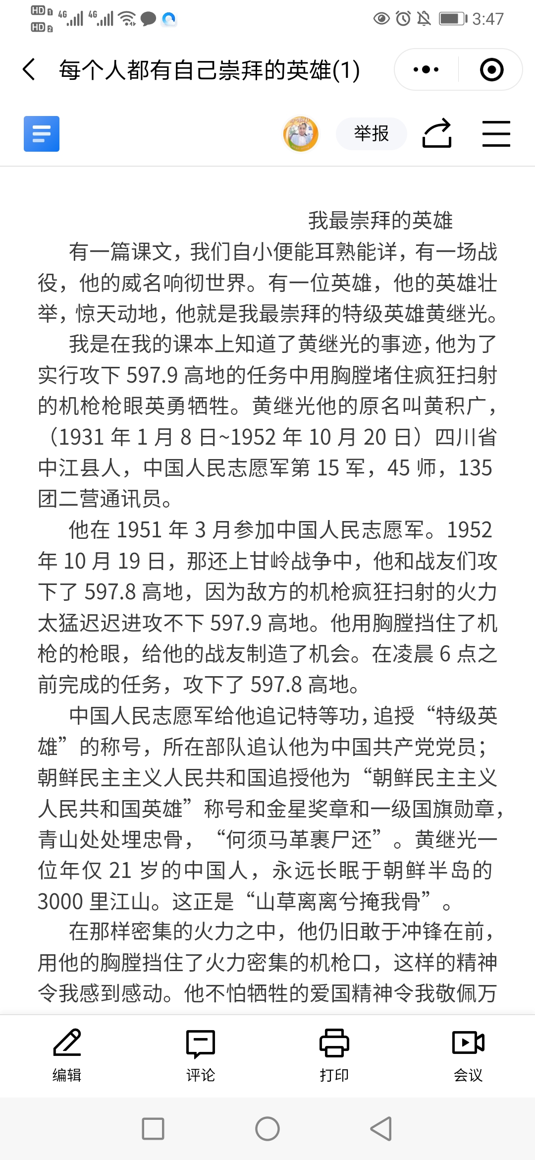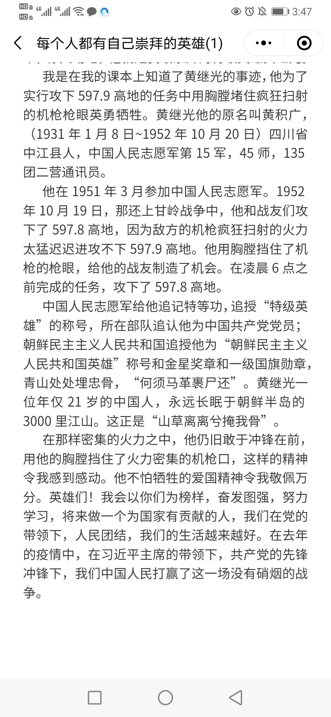 我最崇拜的英雄