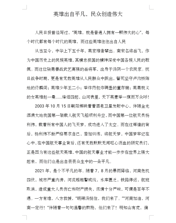 英雄出自平凡,民众创造伟大
