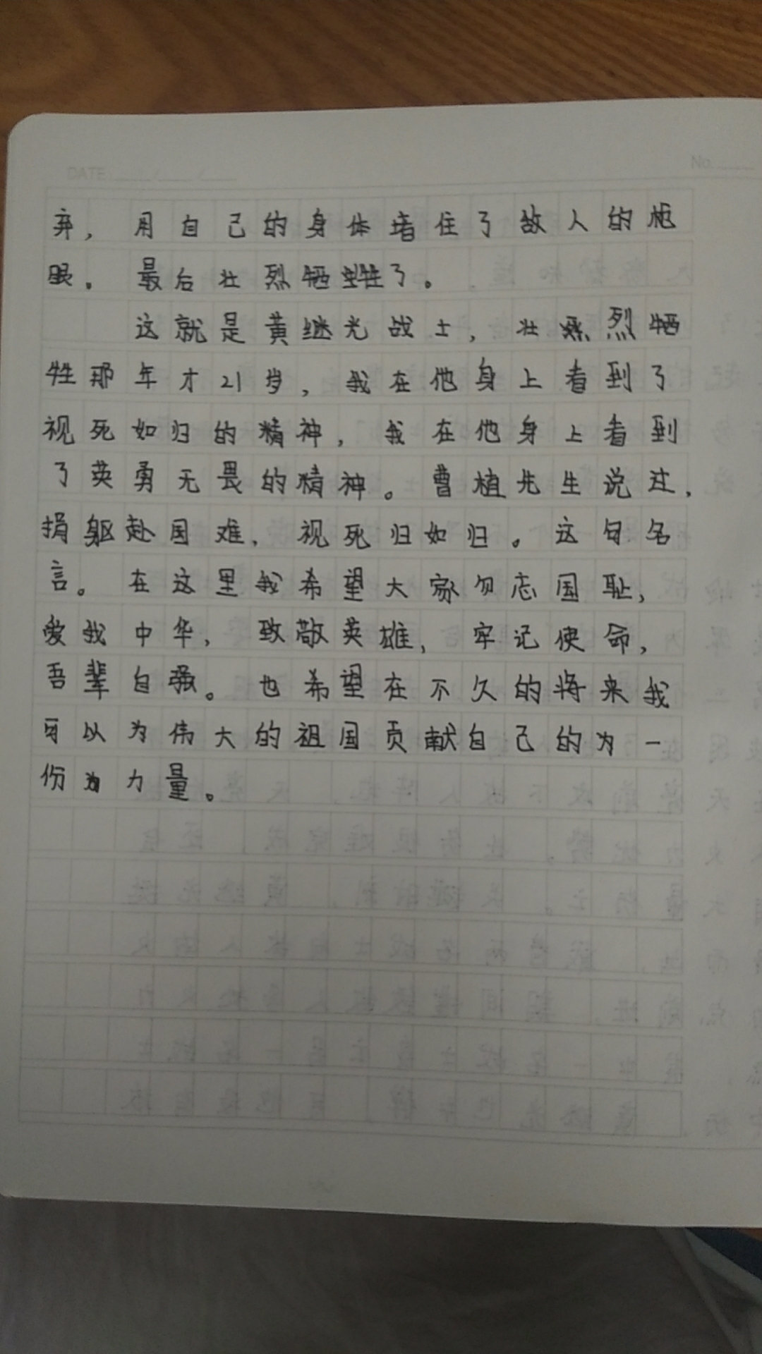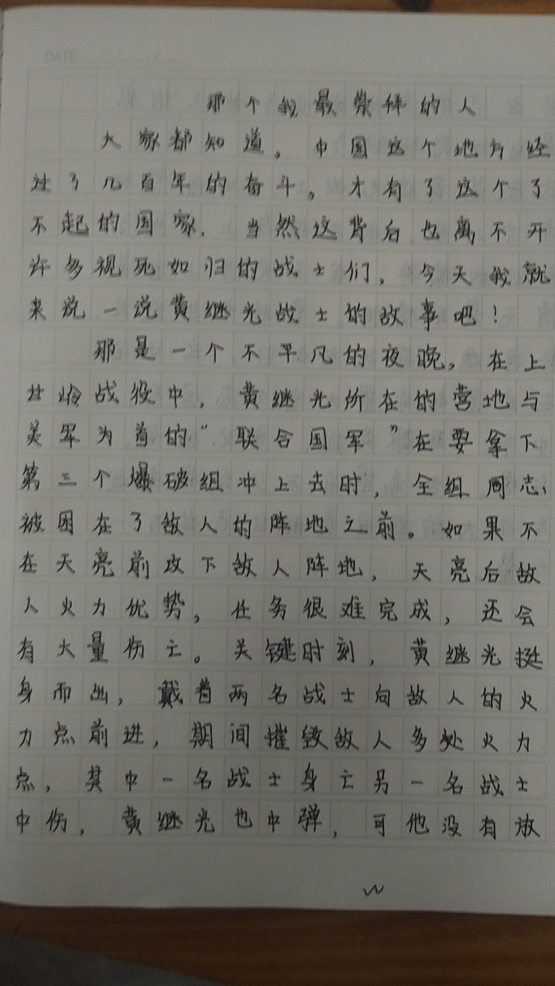最崇拜的人物 黄继光