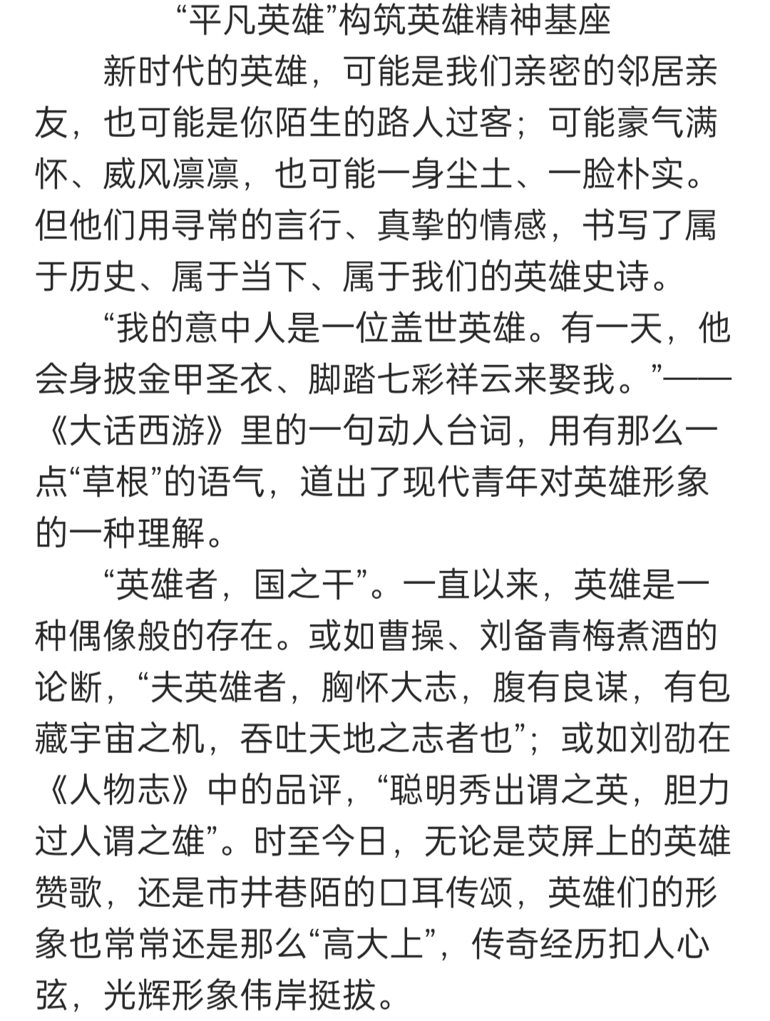 “平凡英雄”构筑英雄精神基座
