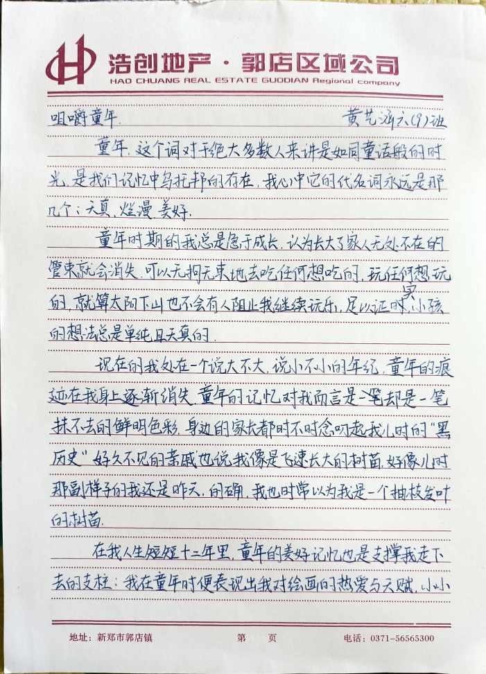 指导老师:岳俊玲 所属学校:新郑市黄水路小学