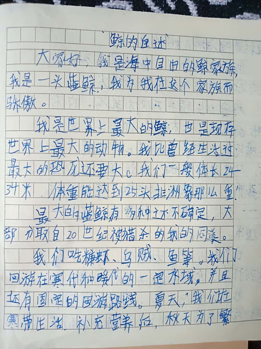 鲸的自述 热1117 类别:记叙 发表时间:2018-09-27 09:29 已有 1118 次阅读 指导老师:帖红燕 所属学校:郑州市二七区淮河东路小学