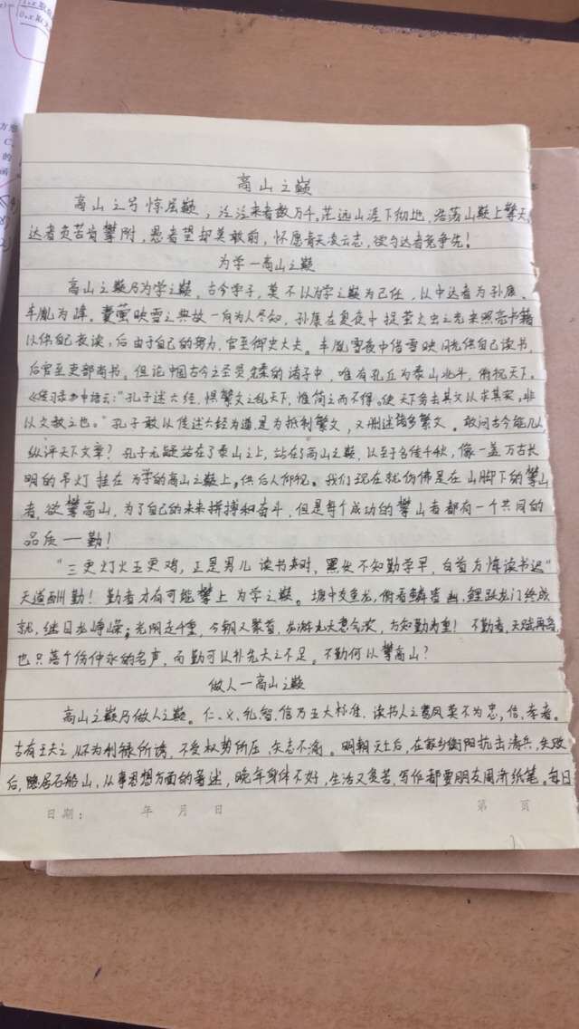高山之巅 热235 类别:议论 发表时间:2017-09-10 13:08 已有 236 次阅读 指导老师:赵秋红 所属学校:郑州市第七中学