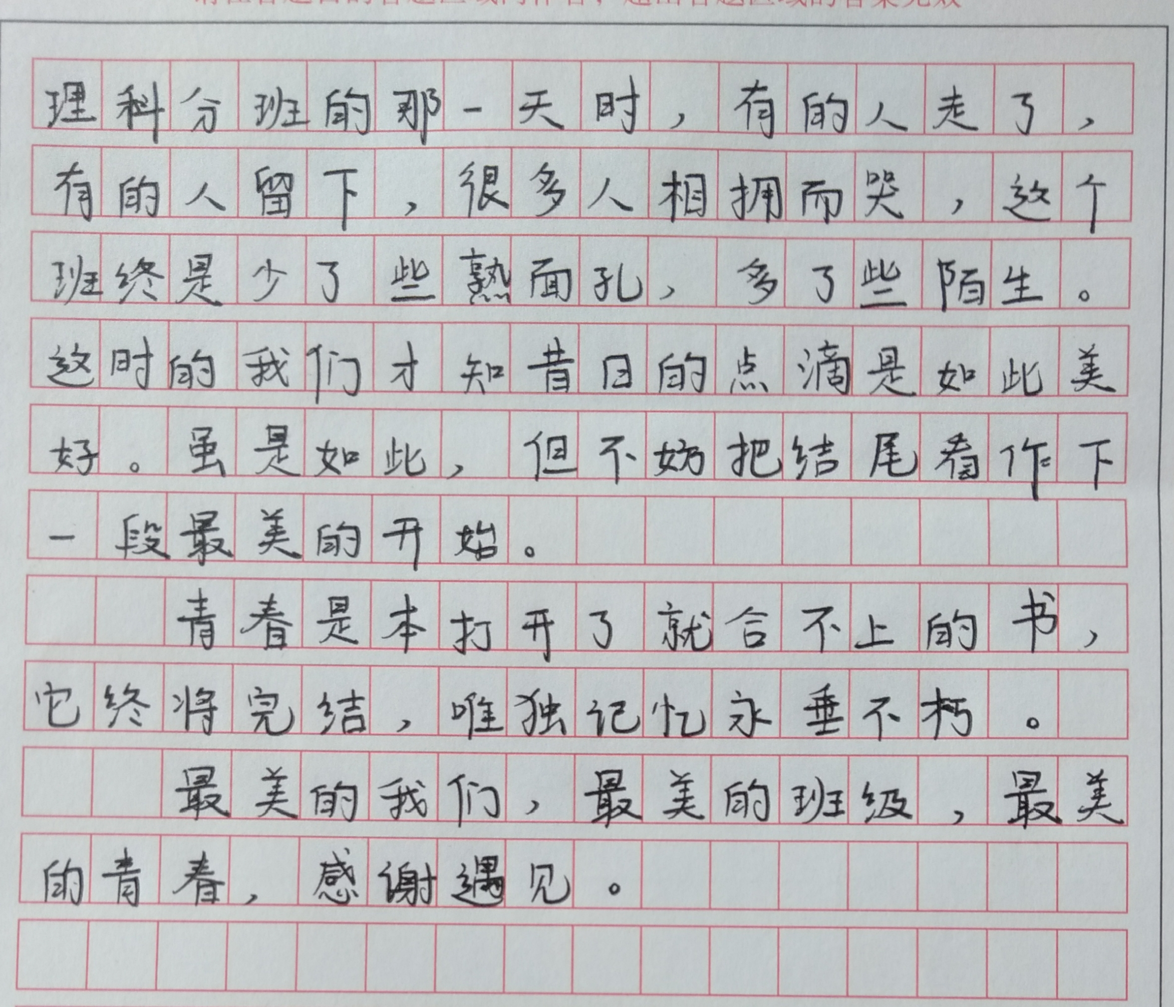 最美的青春我的班 热1346 类别:记叙 发表时间:2019-08-07 17:20 已有 1347 次阅读 指导老师:赵素敏 所属学校:登封市第一高级中学