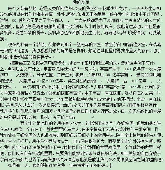 我的梦想 热561 类别:原创 发表时间:2017-10-14 14:30 已有 562 次阅读 指导老师:张文杰 所属学校:中牟县轩顺街学校