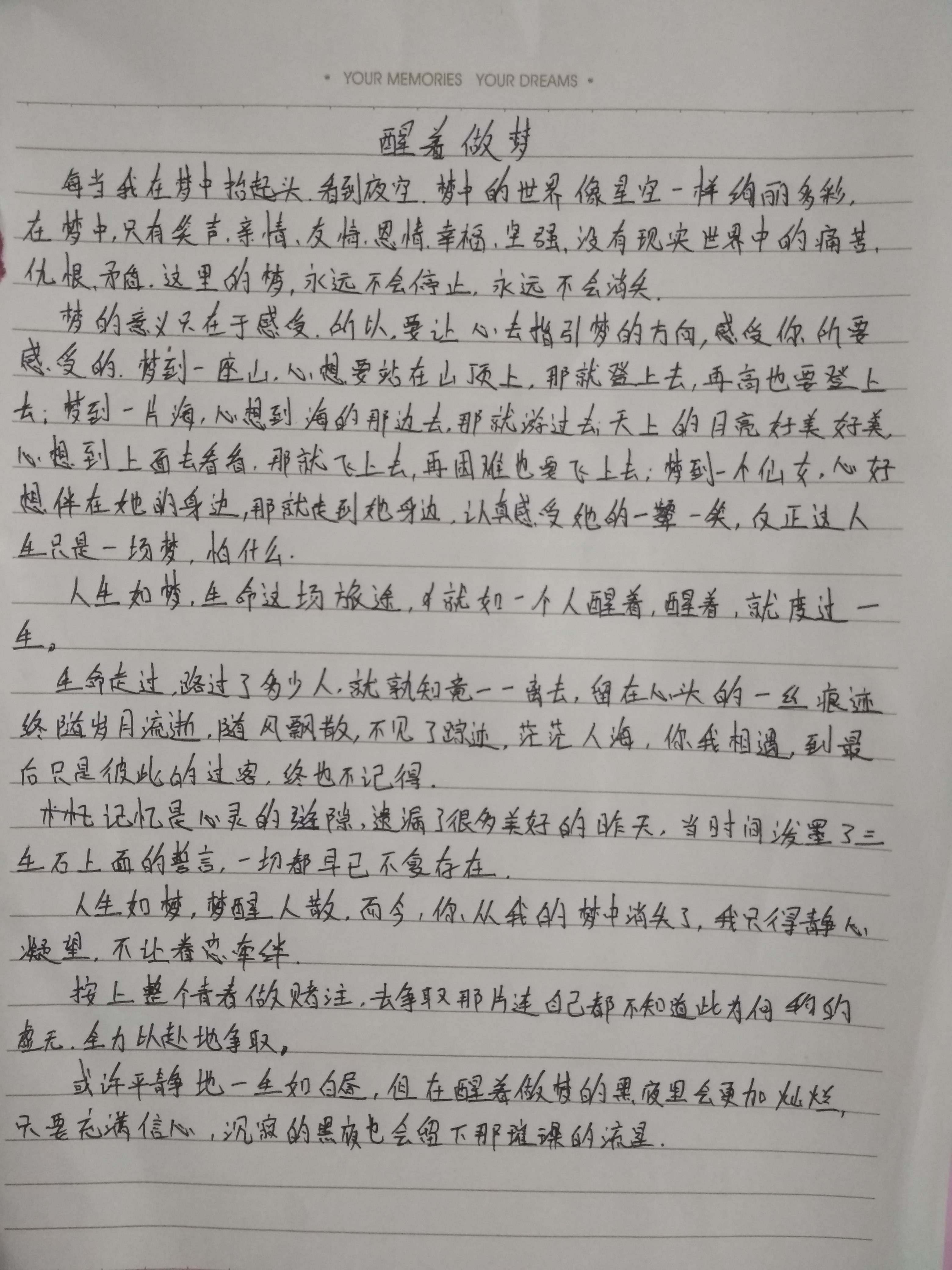 醒着做梦 热716 类别:其他 发表时间:2017-10-02 15:34 已有 717 次阅读 指导老师:徐保富 所属学校:实验高级中学