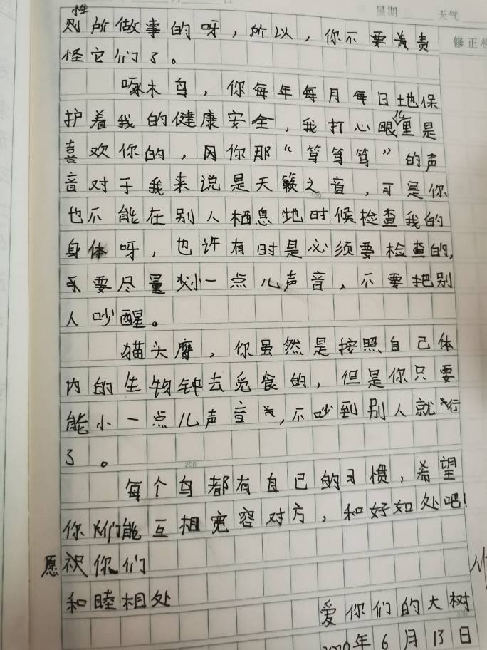 一棵大树的信 热380 类别:其他 发表时间:2020-06-14 14:19 已有 381 次阅读 指导老师:王小丽 所属学校:新密市实验小学