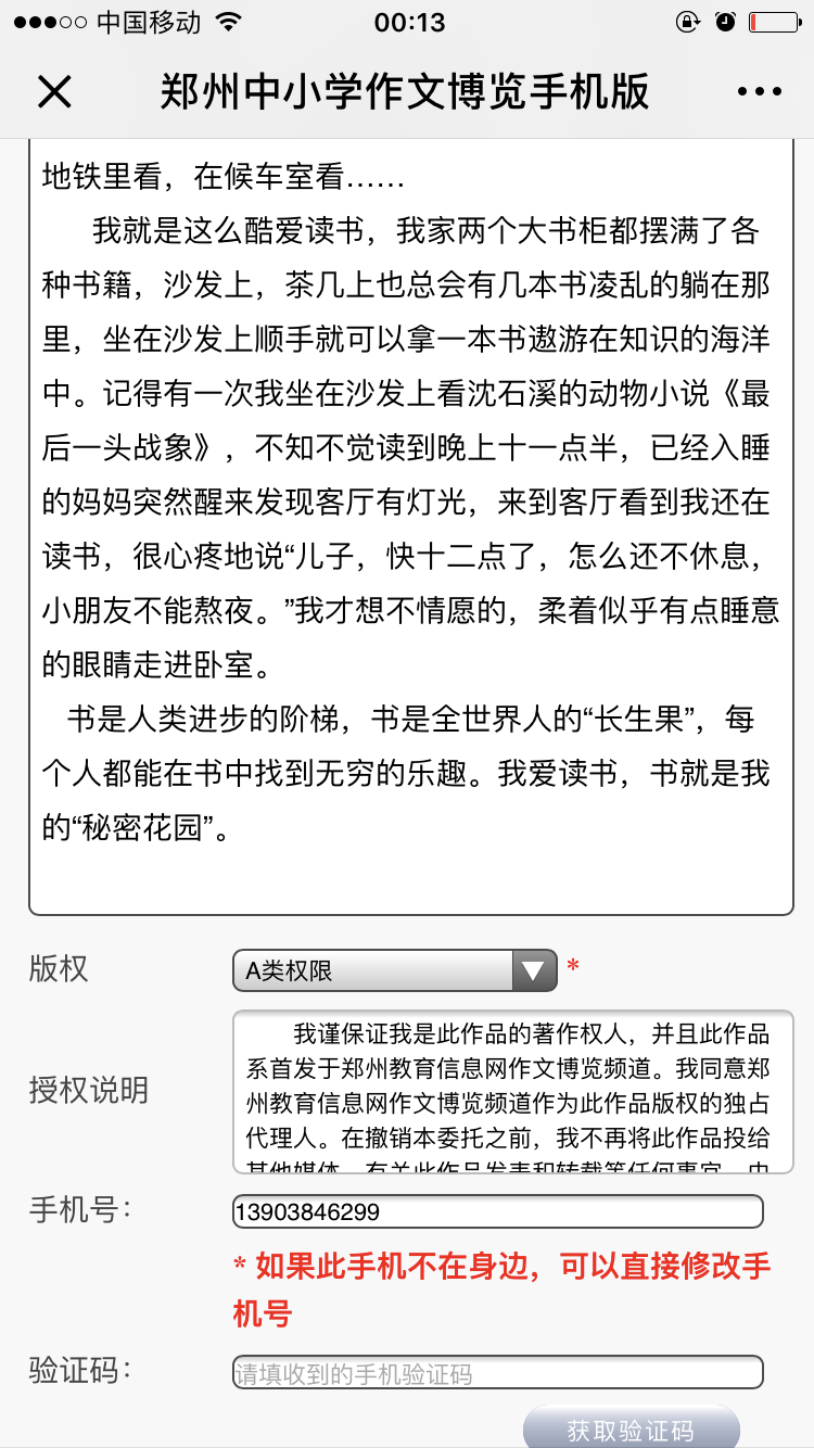 版权说明: A类权限 我谨保证我是此作品的著作权人,并且此作品系首发于郑州教育信息网作文博览频道。我同意郑州教育信息网作文博览频道作为此作品版权的独占代理人。在撤销本委托之前,我不再将此作品投给其他媒体,有关此作品发表和转载等任何事宜,由郑州教育信息网作文博览频道全权负责。未经郑州教育信息网作文博览频道转授权,其他媒体一律不得转载。 |