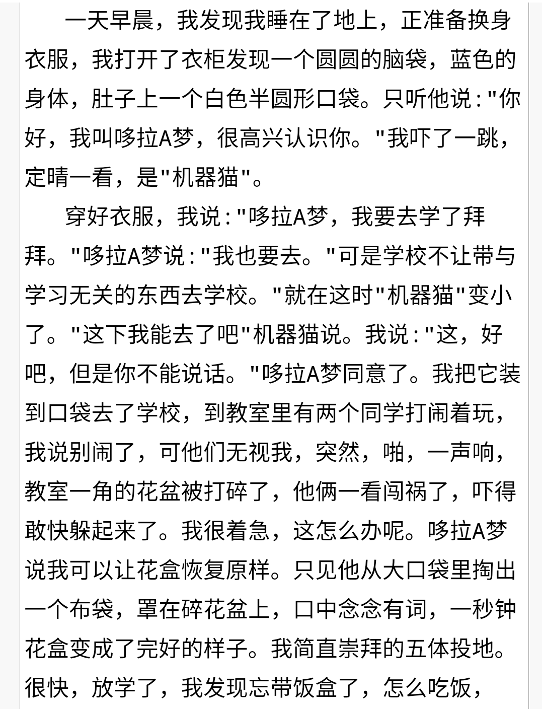 哆拉A梦来到我身边 热915 类别:记叙 发表时间:2018-10-10 21:39 已有 915 次阅读 指导老师:一一 所属学校:金水区金沙小学