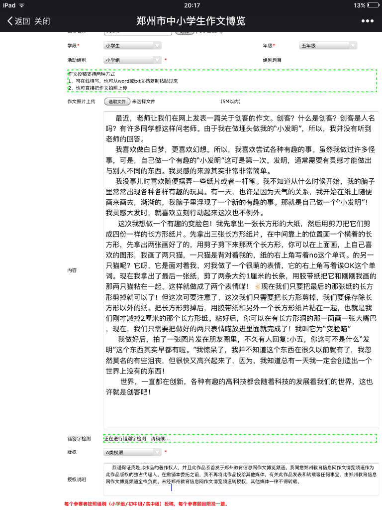 我是小“创客” 热316 类别:记叙 发表时间:2017-10-15 20:27 已有 317 次阅读 指导老师:刘珍珍 所属学校:郑州市中原区淮河路小学