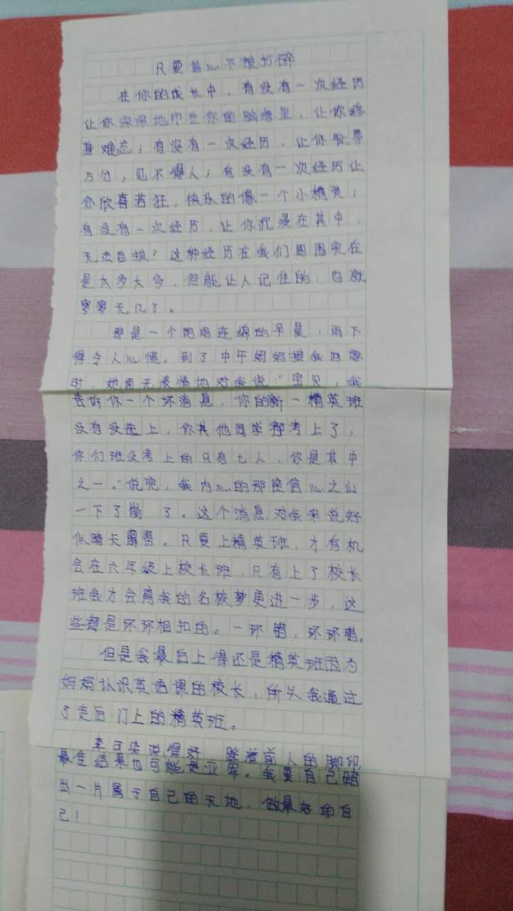 只要信心不被打碎 热689 类别:记叙 发表时间:2017-10-15 20:45 已有 690 次阅读 指导老师:张靖悦 所属学校:郑州市中原区淮河路小学