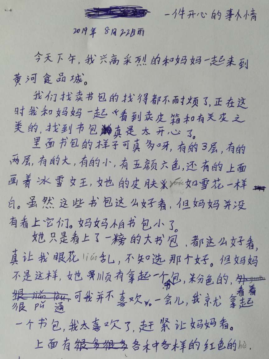 一件开心的事情 热480 类别:叙事 发表时间:2019-08-22 12:29 已有 481 次阅读 指导老师:宋伟霞 所属学校:金水区南阳路第一小学