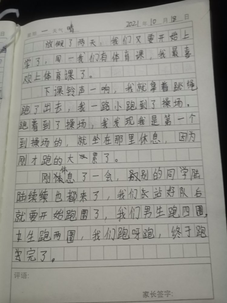 体育课 热1083 类别:叙事 发表时间:2021-10-18 19:44 已有 1084 次阅读 指导老师:高瑞钗 所属学校:郑州市金水区农科路小学