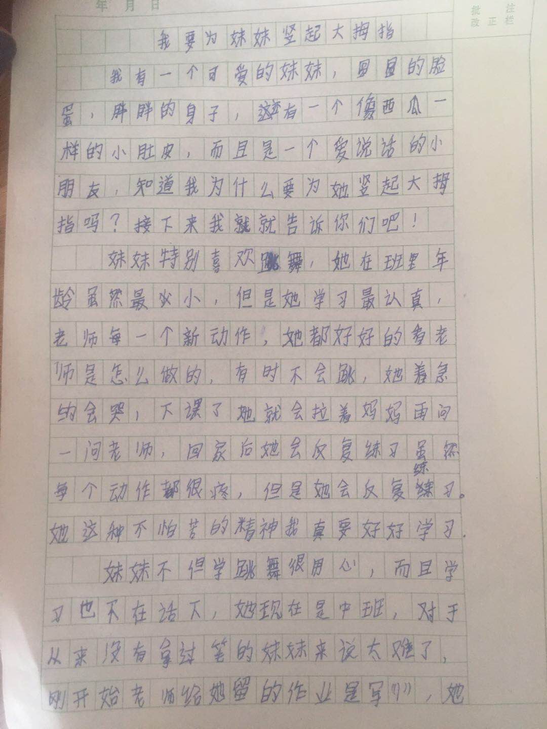 我要为妹妹竖起大拇指 热507 类别:写人 发表时间:2019-06-28 18:26 已有 508 次阅读 指导老师:李彩宏 所属学校:郑州市惠济区古荥镇实验小学