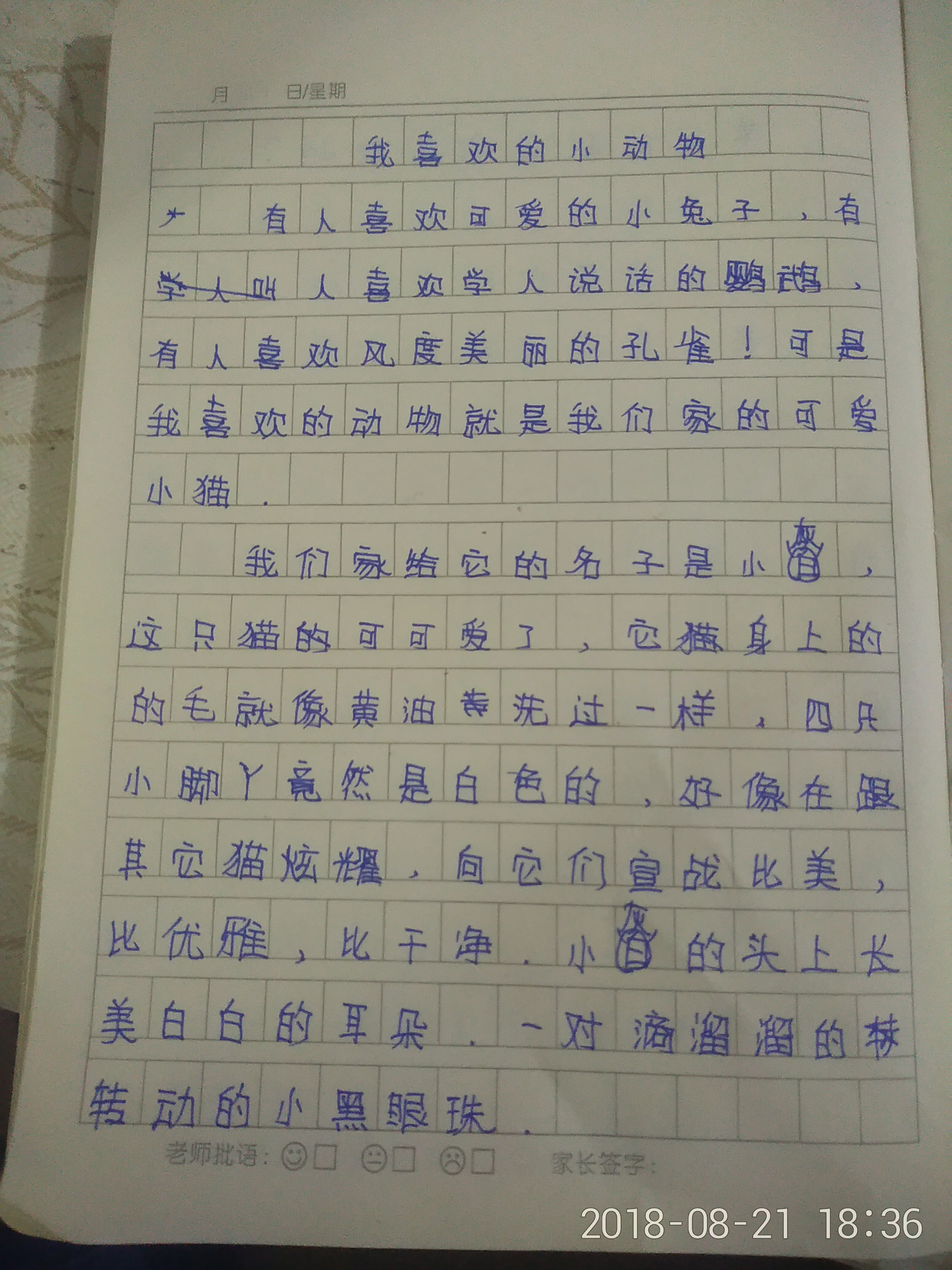 我喜欢的小动物 热471 类别:状物 发表时间:2018-08-21 18:37 已有 472 次阅读 指导老师:马瑞娟 所属学校:荥阳市第一小学