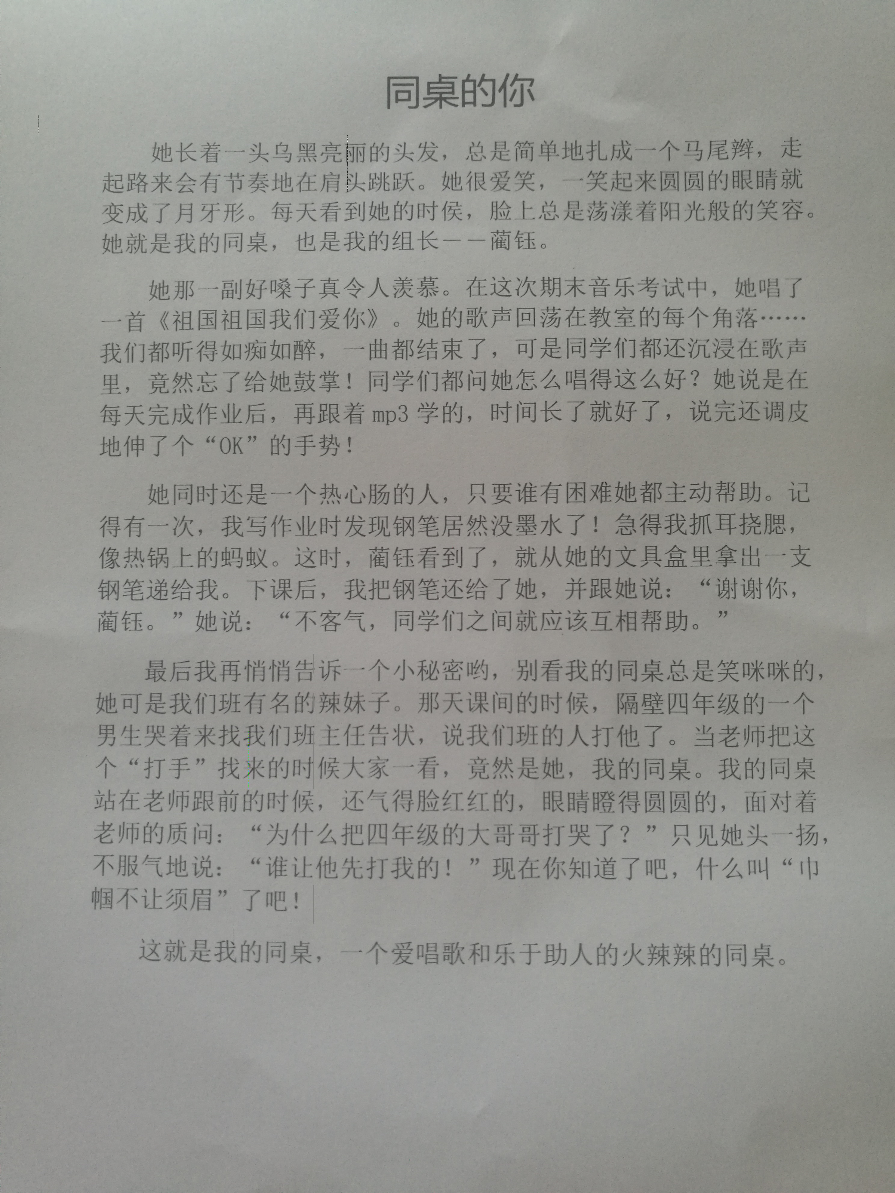 同桌的你 热944 类别:写人 发表时间:2018-07-03 18:37 已有 945 次阅读 指导老师:王金萍 所属学校:金水区庙李镇丰庆路小学