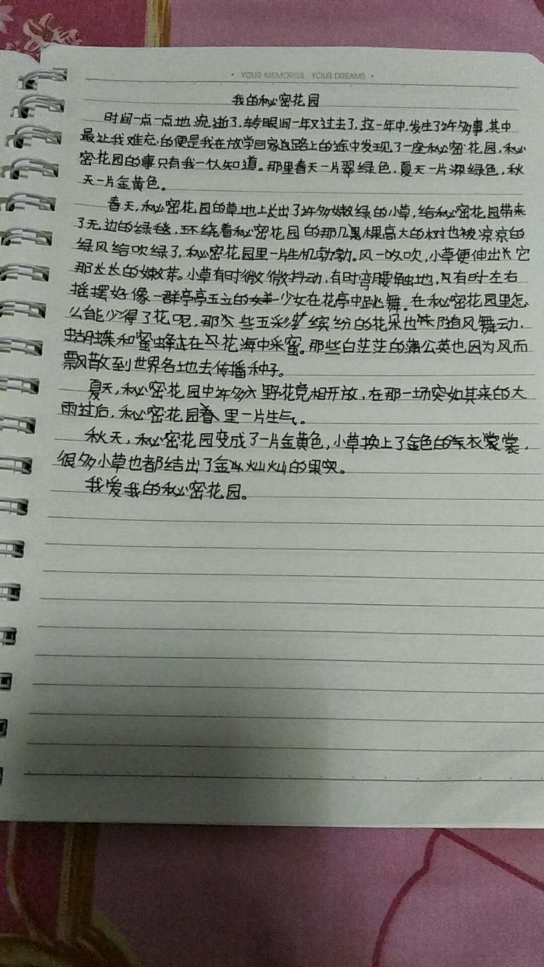 我的“秘密花园” 热613 类别:原创 发表时间:2018-08-26 20:52 已有 614 次阅读 指导老师:时佩琪 所属学校:登封市中岳街道办事处中心小学