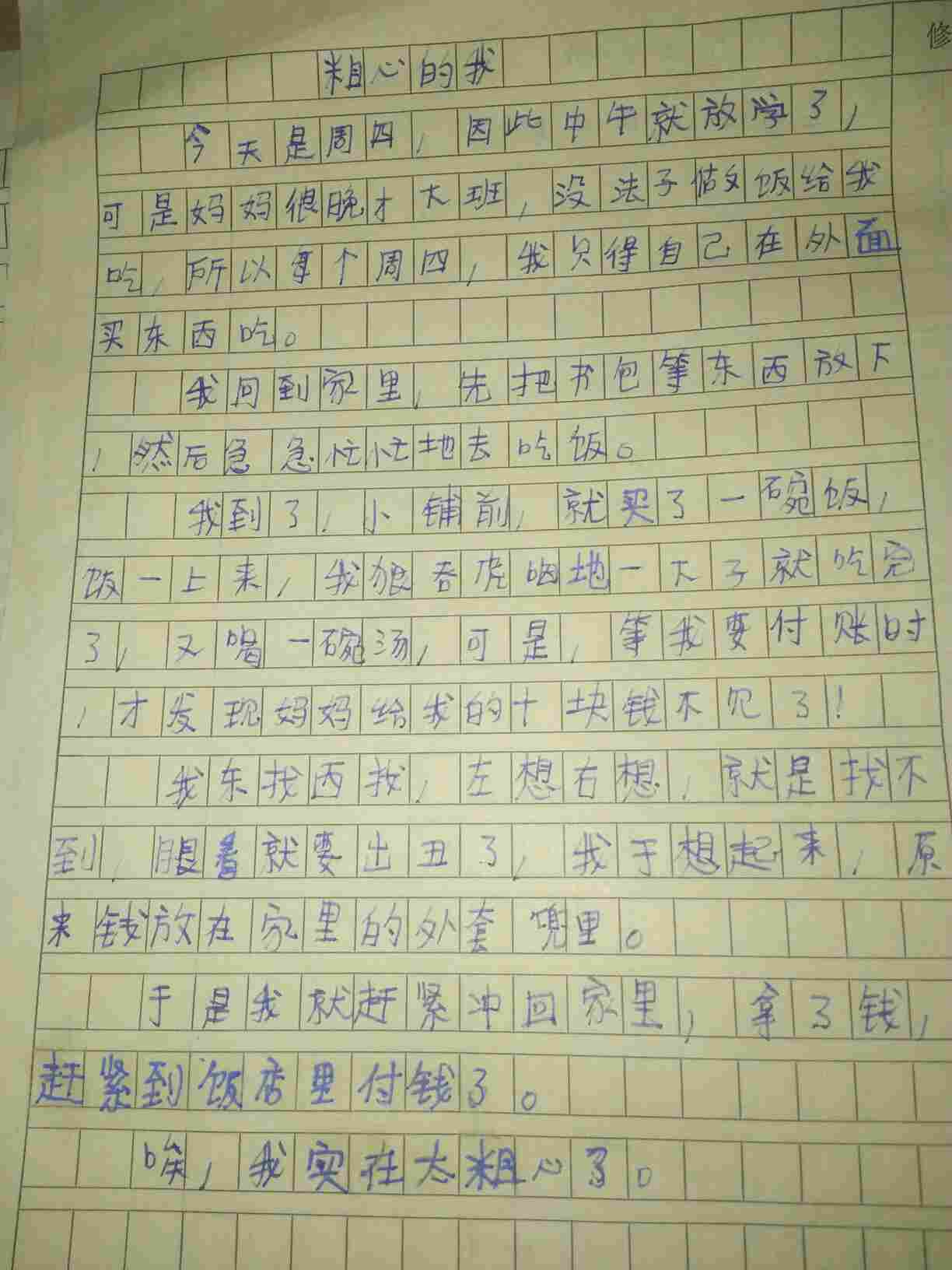 粗心的我 热983 类别:写人 发表时间:2018-08-30 21:40 已有 984 次阅读 指导老师:李阳 所属学校:金水区凤凰双语小学