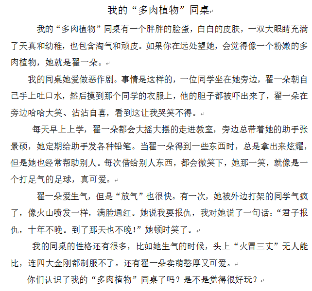我的“多肉植物”同桌 热1128 类别:写人 发表时间:2018-08-07 13:16 已有 1129 次阅读 指导老师:王茹 所属学校:金水区四月天小学