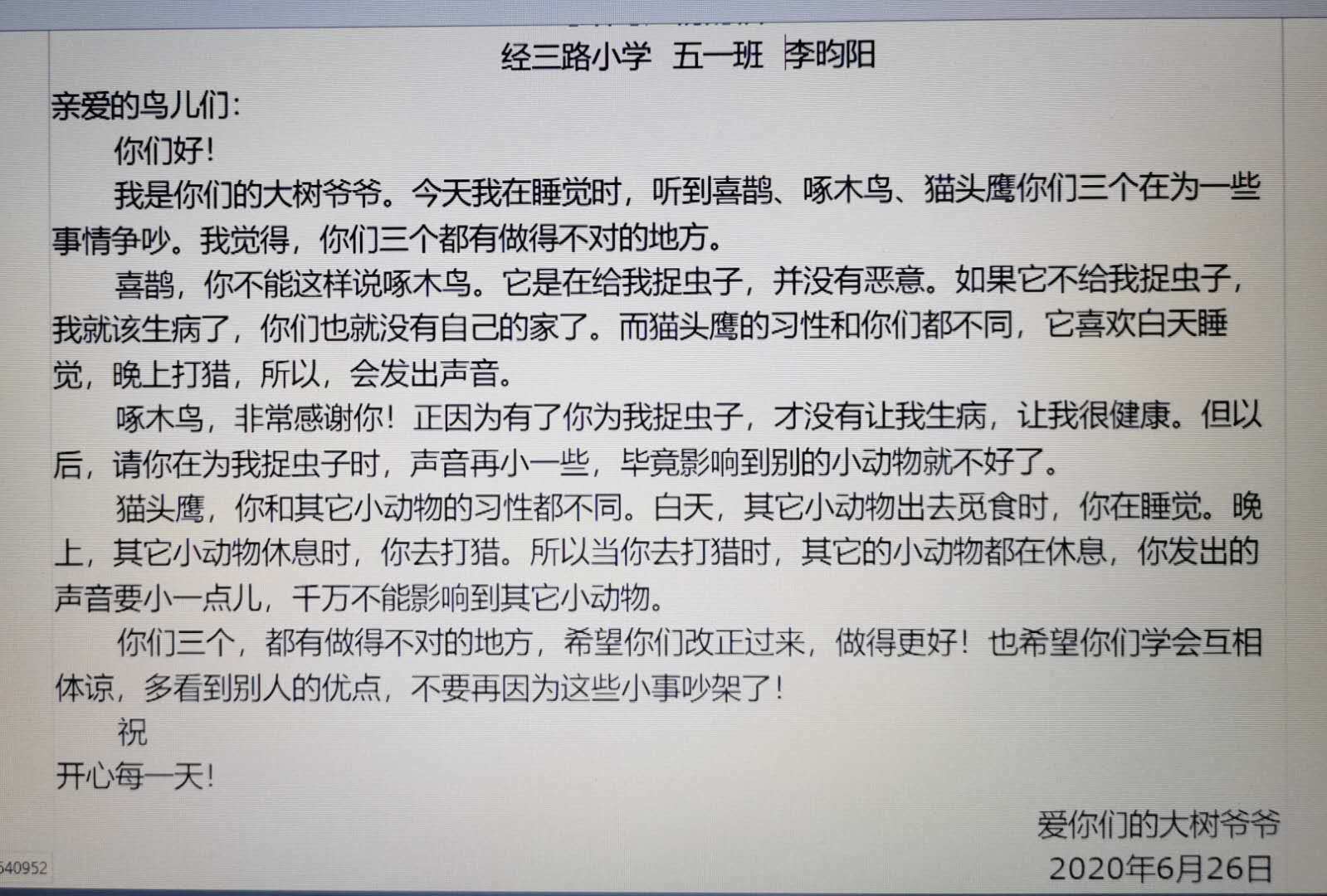 写给鸟儿们的信 热361 类别:原创 发表时间:2020-06-26 17:04 已有 362 次阅读 指导老师:巴黎 所属学校:金水区经三路小学