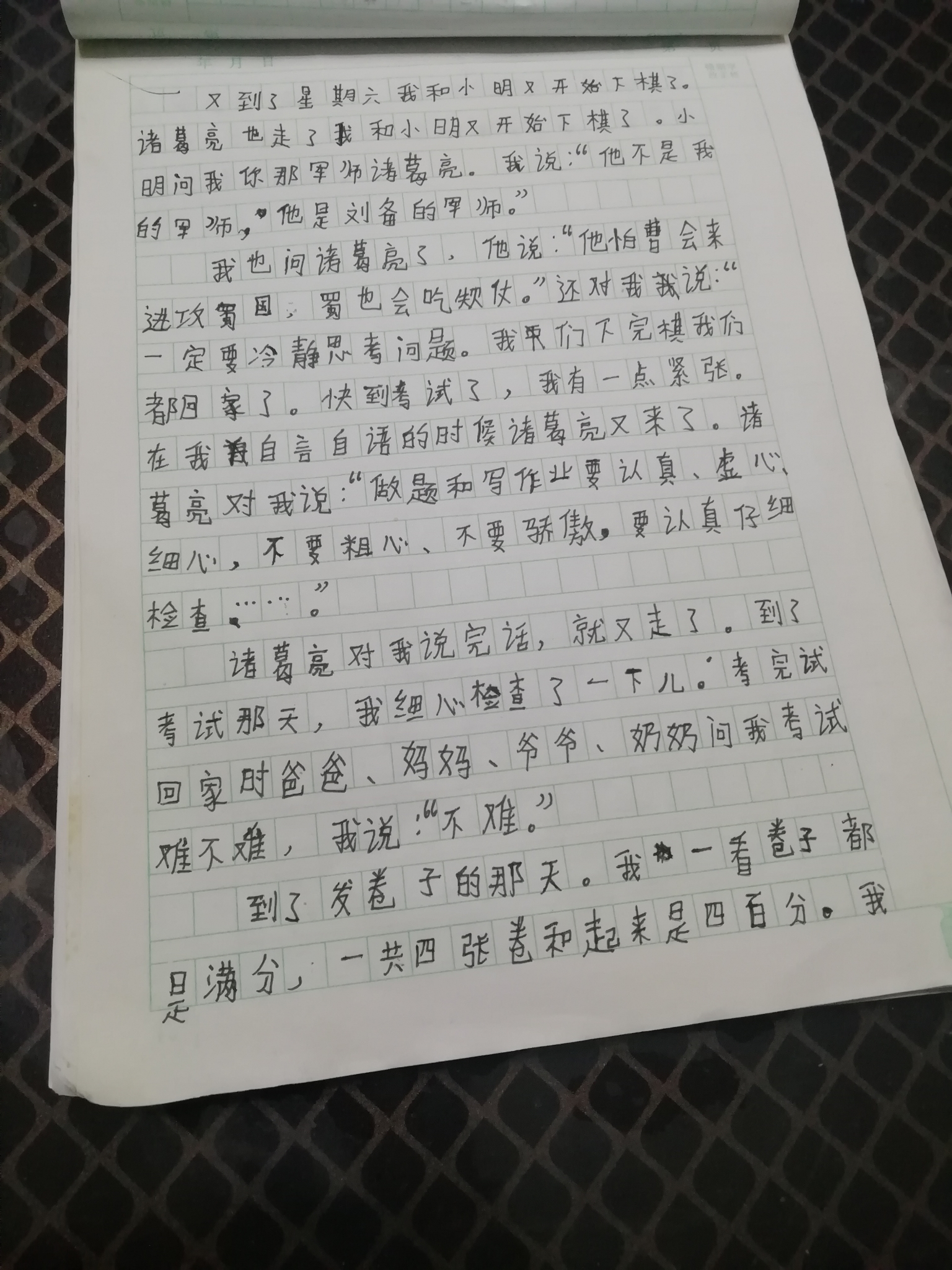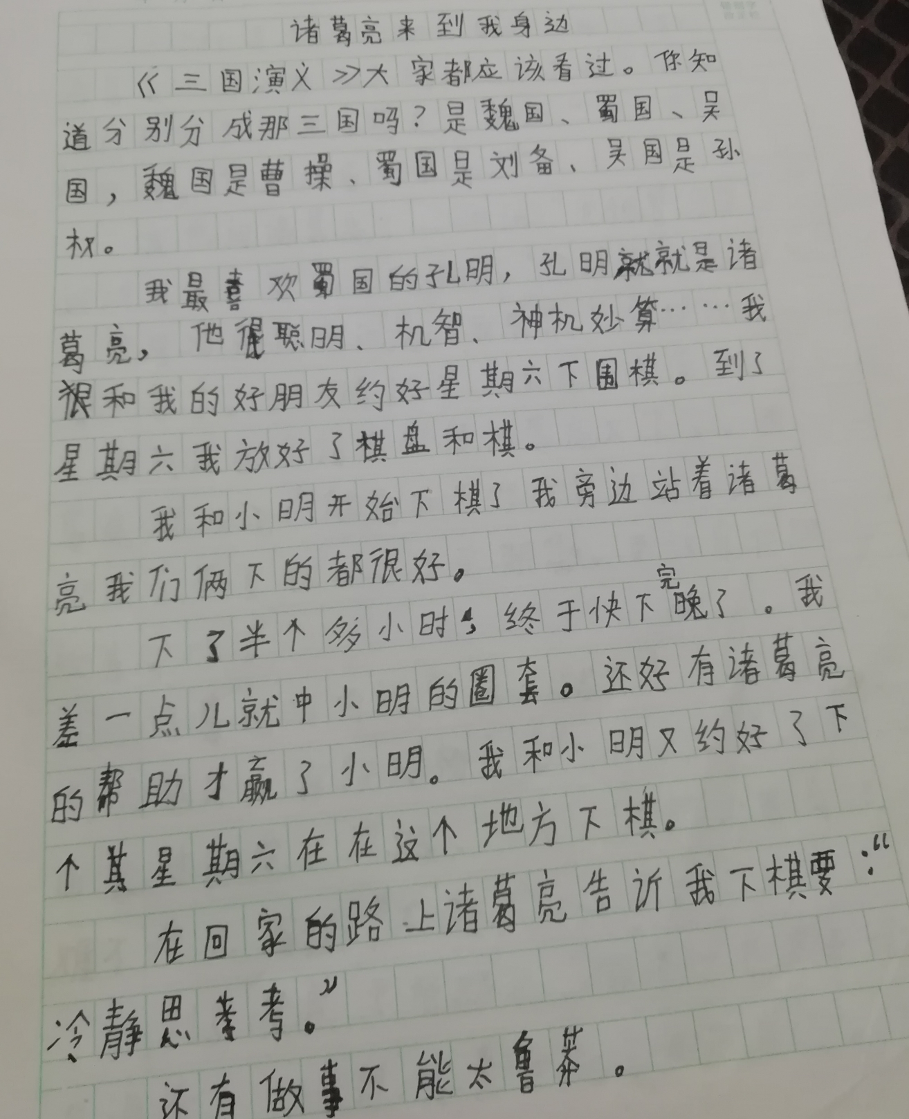 诸葛亮来到我身边 热925 类别:写人 发表时间:2018-08-23 20:50 已有 926 次阅读 指导老师:时佩琪 所属学校:登封新区中强学校