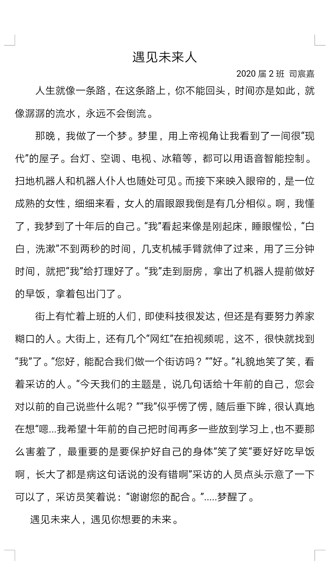 遇见未来人 热1121 类别:叙事 发表时间:2018-08-24 15:31 已有 1122 次阅读 指导老师:陈闪闪 所属学校:郑州实验外国语中学