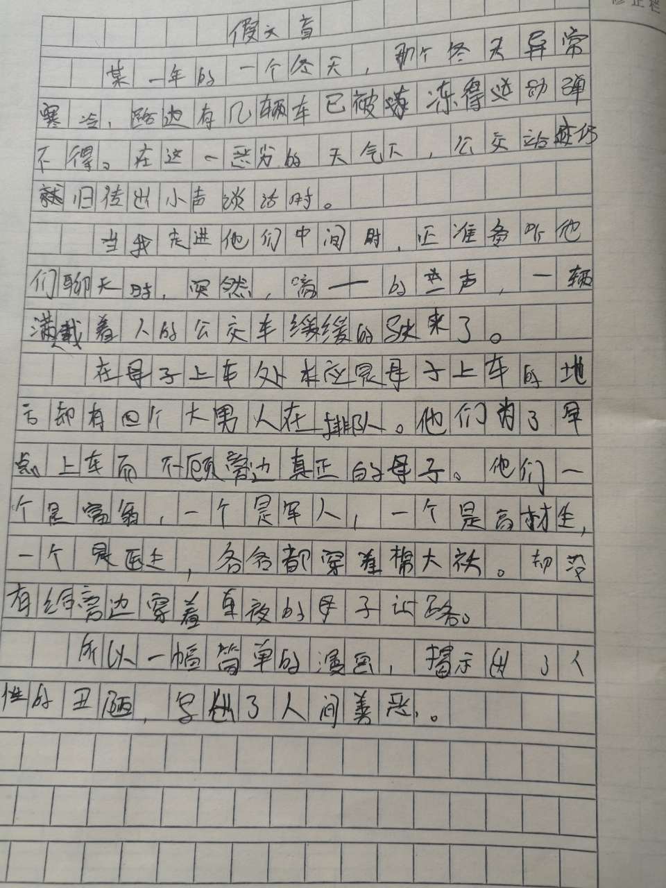 版权说明: A类权限 我谨保证我是此作品的著作权人,并且此作品系首发于郑州教育信息网作文博览频道。我同意郑州教育信息网作文博览频道作为此作品版权的独占代理人。在撤销本委托之前,我不再将此作品投给其他媒体,有关此作品发表和转载等任何事宜,由郑州教育信息网作文博览频道全权负责。未经郑州教育信息网作文博览频道转授权,其他媒体一律不得转载。 |