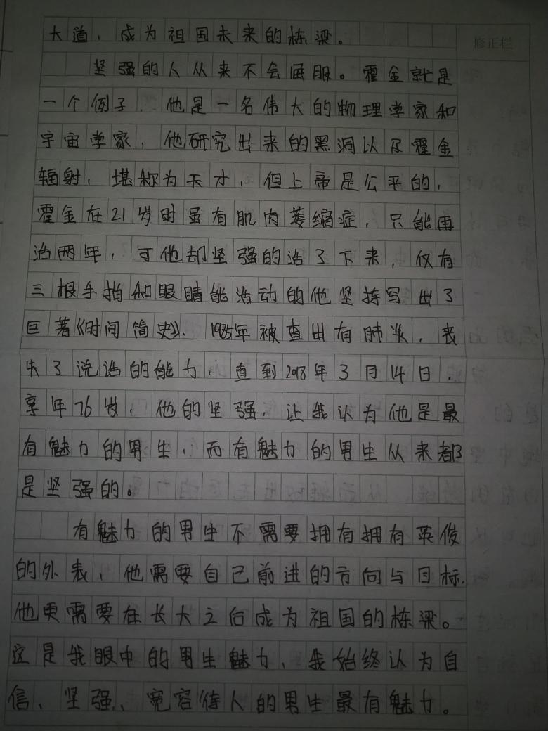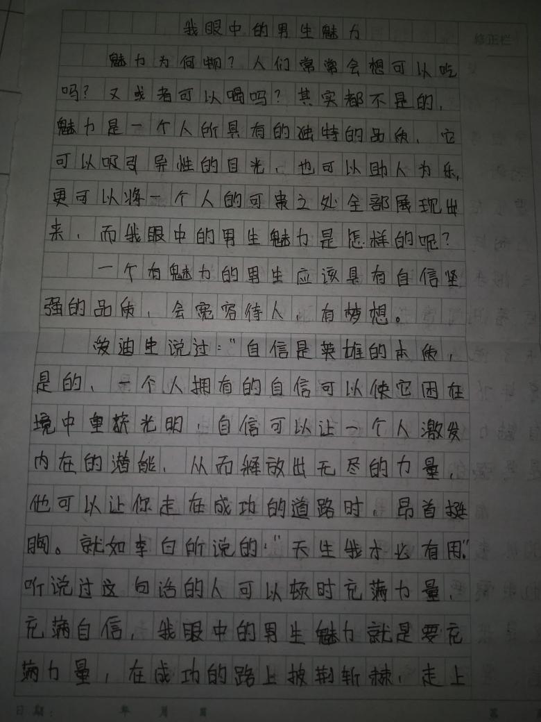 我眼中的男生魅力 热2712 类别:议论 发表时间:2018-09-01 15:13 已有 2713 次阅读 指导老师:刘秀霞 所属学校:登封市东华镇第一初级中学