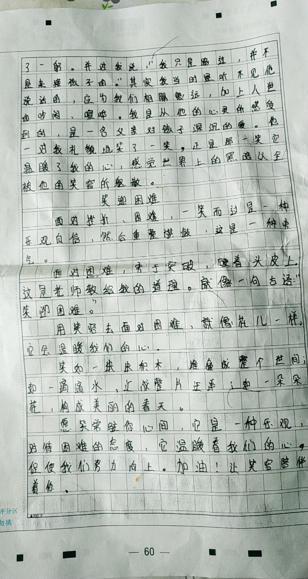 笑容温暖我的心 热774 类别:叙事 发表时间:2020-05-31 09:50 已有 775 次阅读 指导老师:王佳路 所属学校:登封市大金店镇中心小学