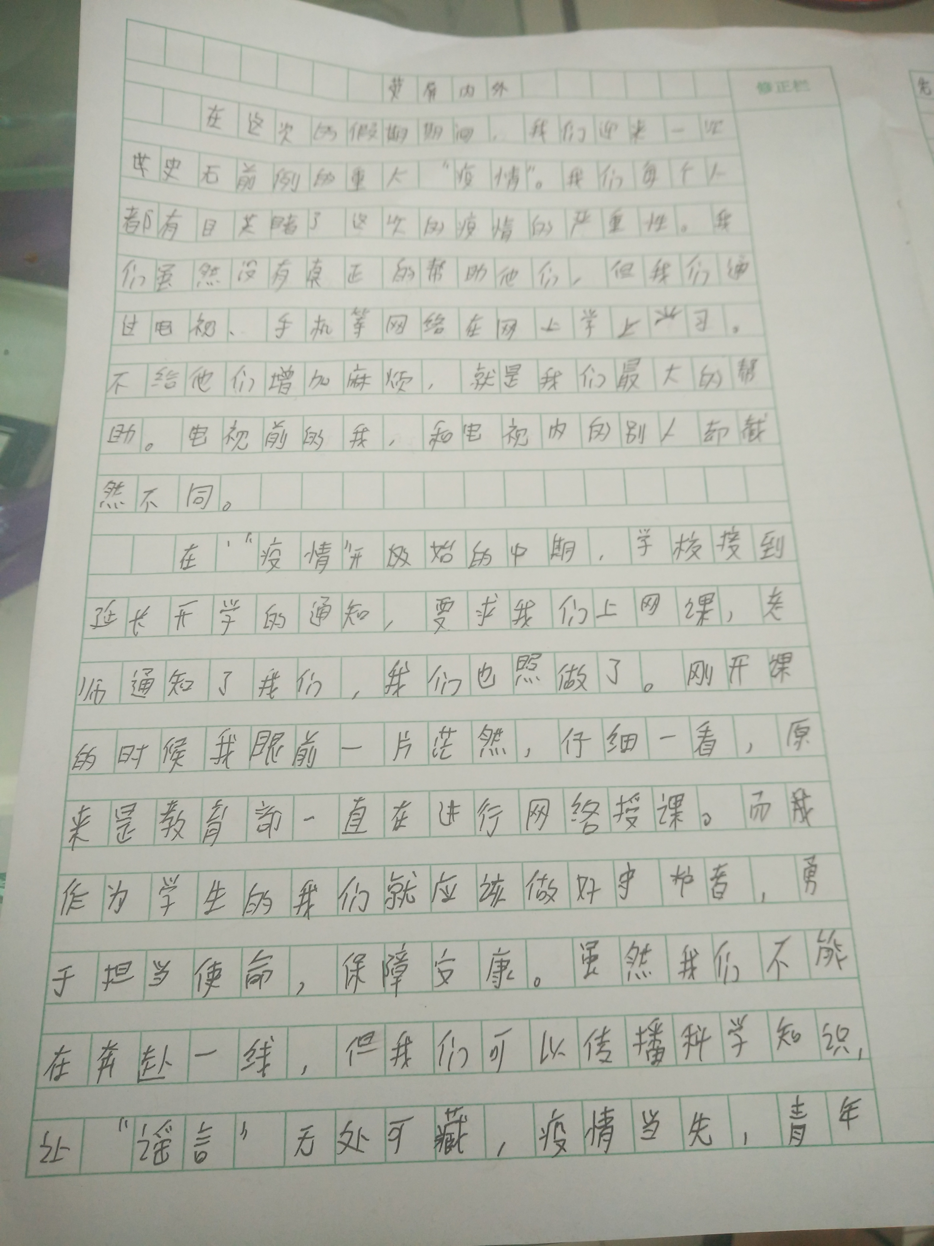 荧屏内外 热777 类别:记叙 发表时间:2020-06-06 12:51 已有 778 次阅读 指导老师:王宇丹 所属学校:登封市直属第一初级中学