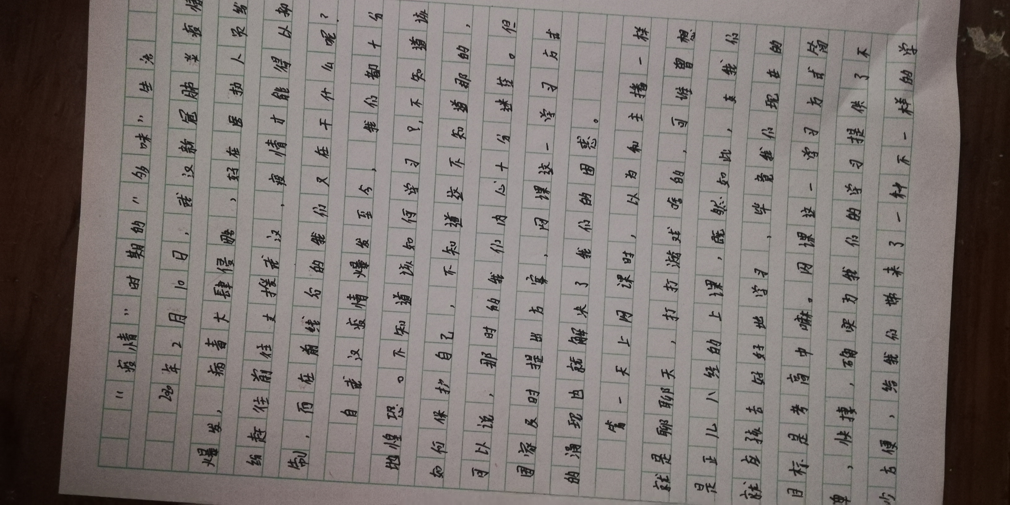 “疫情”时期的“多味”生活 热657 类别:记叙 发表时间:2020-06-07 09:04 已有 658 次阅读 指导老师:范振华 所属学校:登封市大金店镇第一初级中学