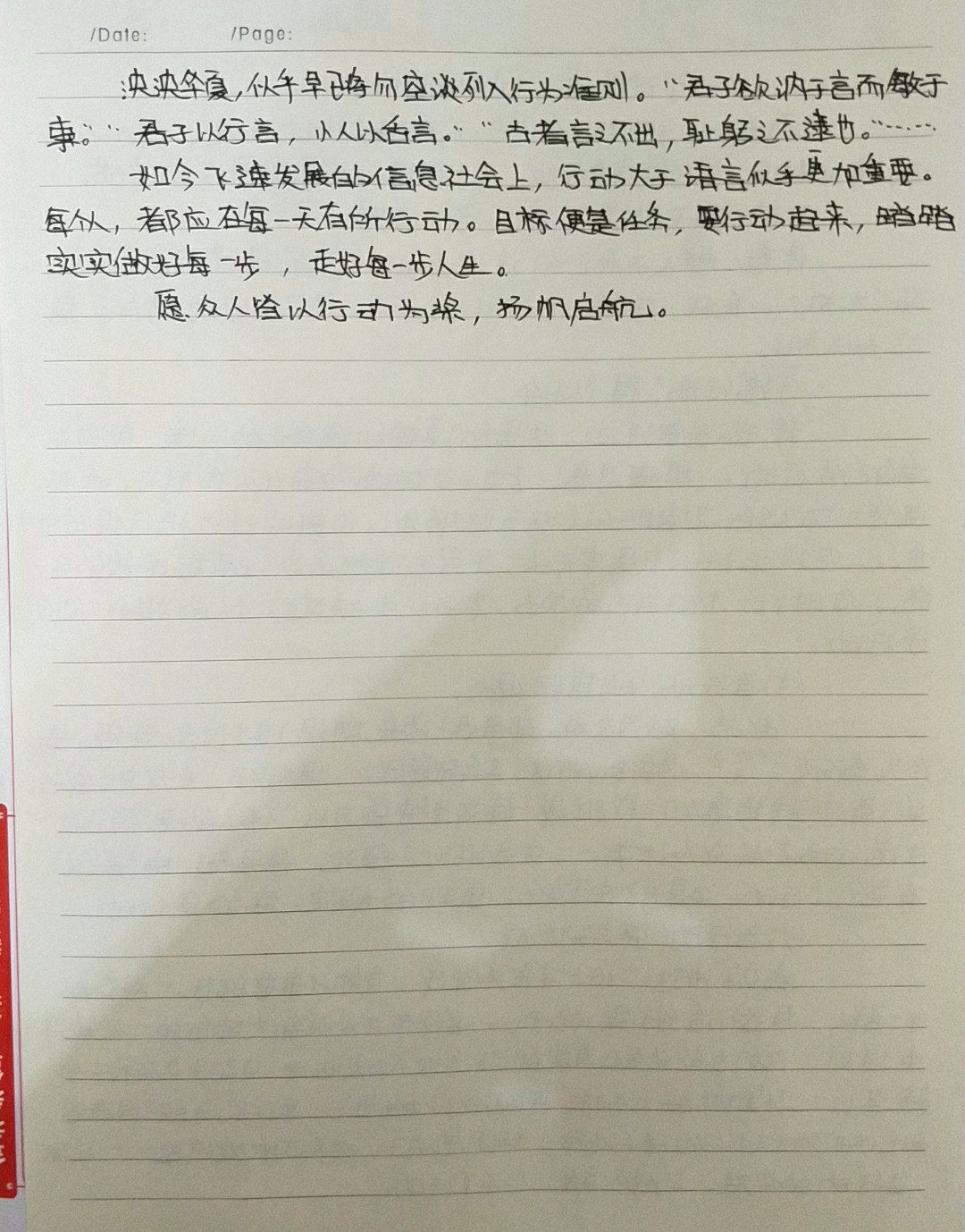 行动为桨,促帆远航 热954 类别:议论 发表时间:2019-07-10 00:02 已有 954 次阅读 指导老师:朱秋华 所属学校:郑州十一学校