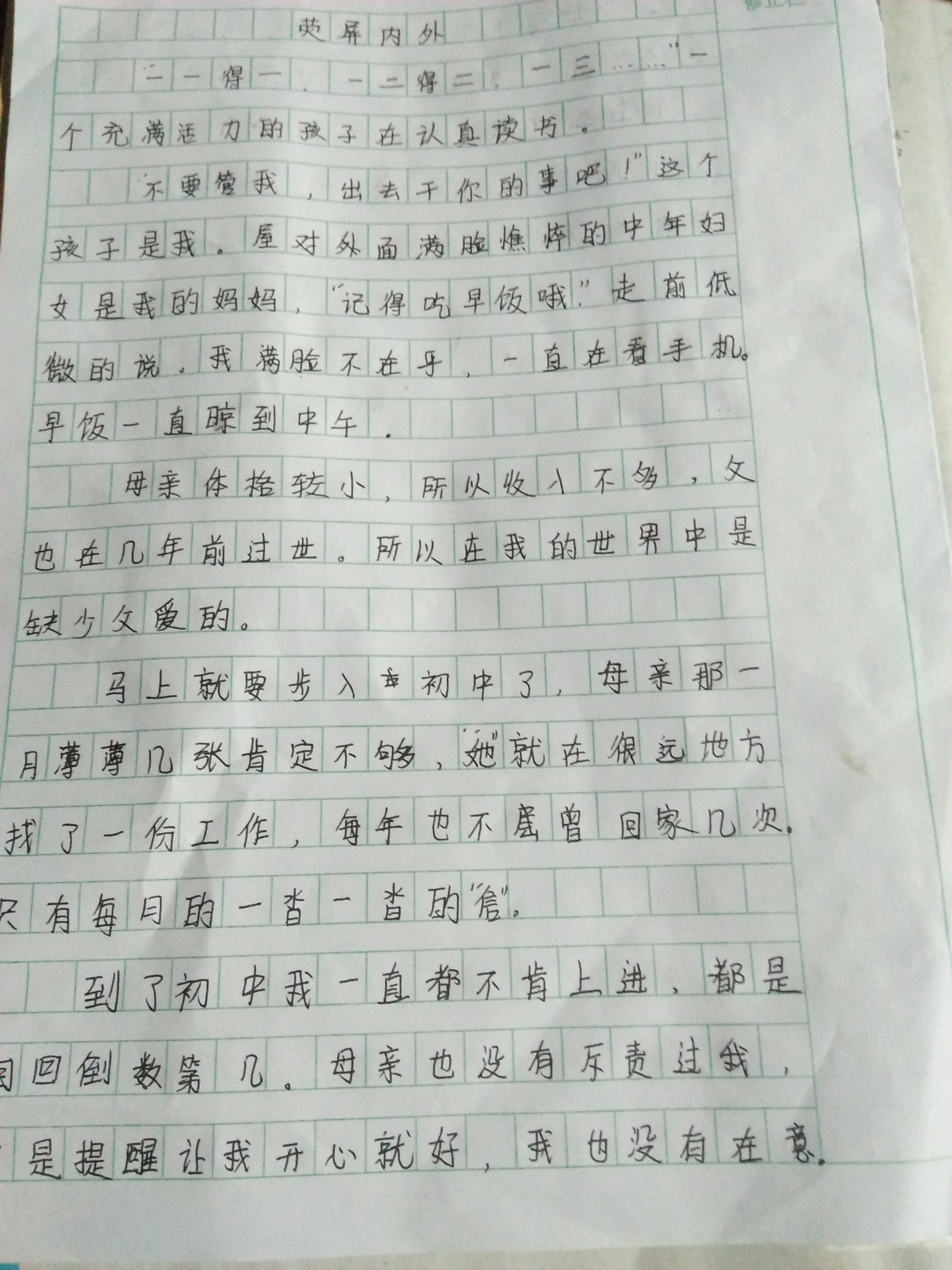 荧屏内外 热584 类别:叙事 发表时间:2020-05-30 20:54 已有 585 次阅读 指导老师:王宇丹 所属学校:登封市大金店镇第一初级中学