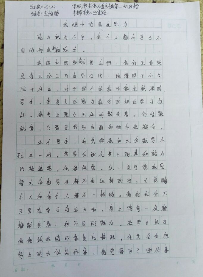 我眼中的男生魅力 热341 类别:写人 发表时间:2018-09-09 14:51 已有 342 次阅读 指导老师:王佳路 所属学校:登封市直属第一初级中学