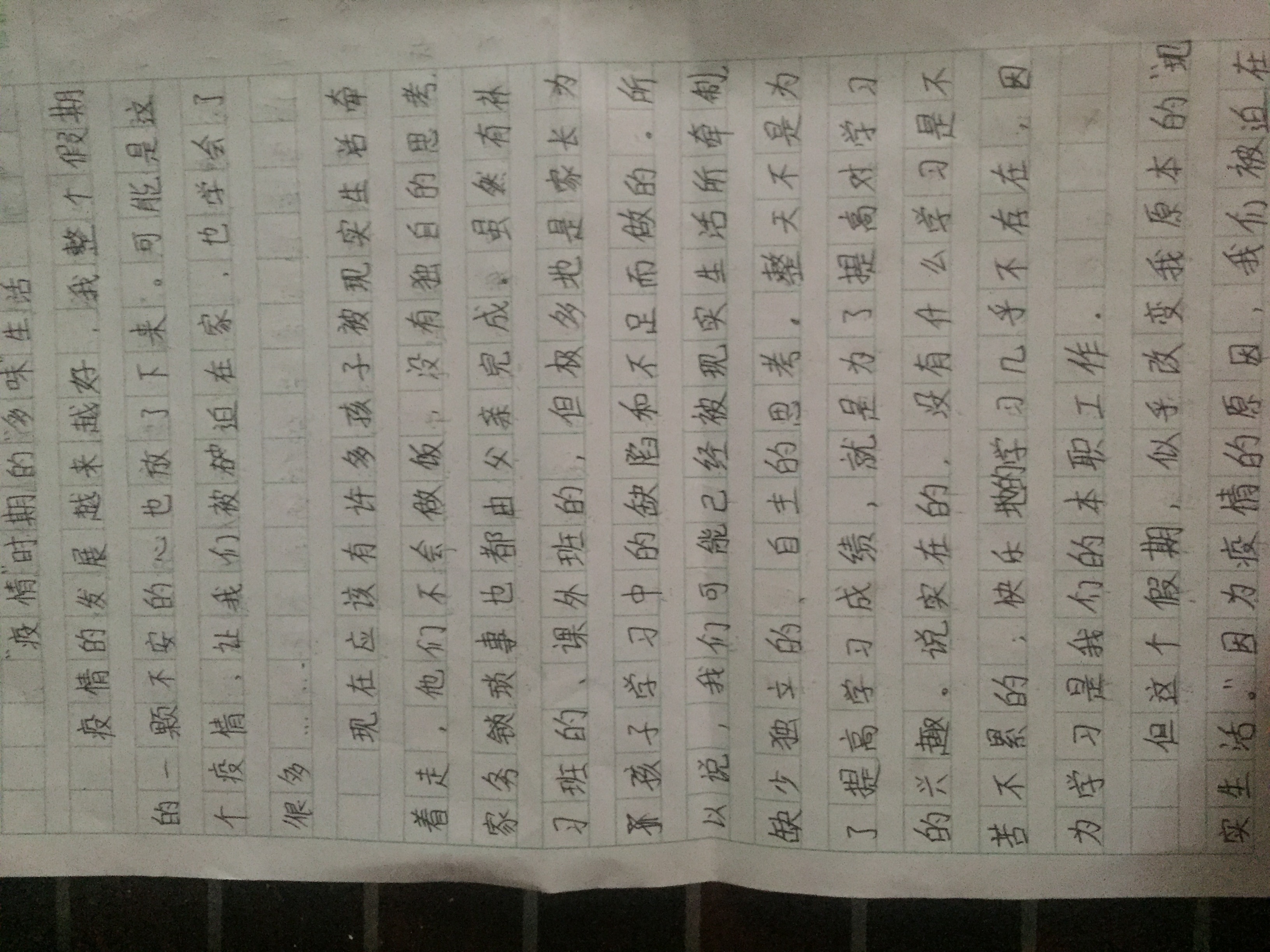 疫情时期的多味生活 热413 类别:叙事 发表时间:2020-06-07 13:57 已有 414 次阅读 指导老师:王宇丹 所属学校:登封市直属第一初级中学