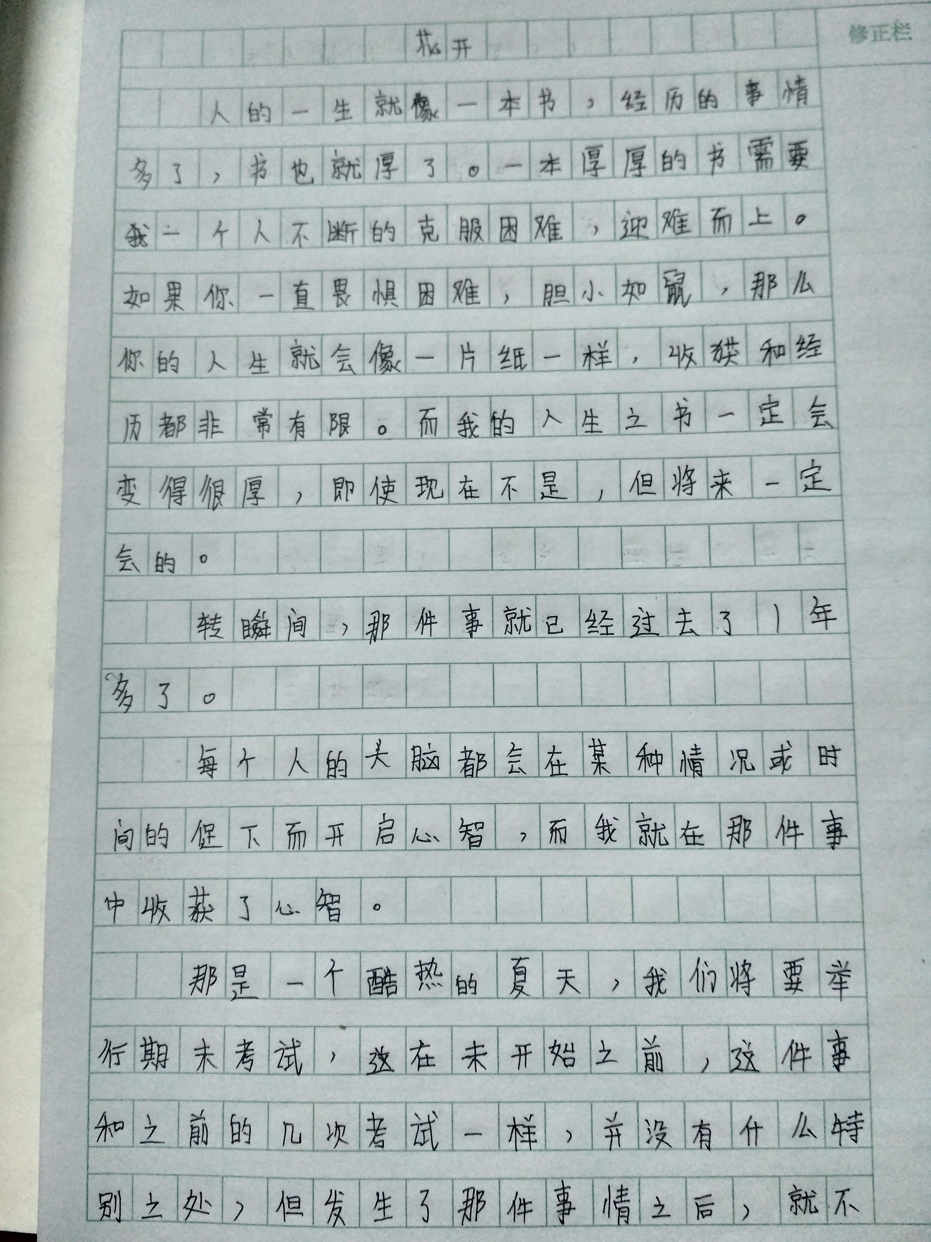 版权说明: A类权限 我谨保证我是此作品的著作权人,并且此作品系首发于郑州教育信息网作文博览频道。我同意郑州教育信息网作文博览频道作为此作品版权的独占代理人。在撤销本委托之前,我不再将此作品投给其他媒体,有关此作品发表和转载等任何事宜,由郑州教育信息网作文博览频道全权负责。未经郑州教育信息网作文博览频道转授权,其他媒体一律不得转载。 |