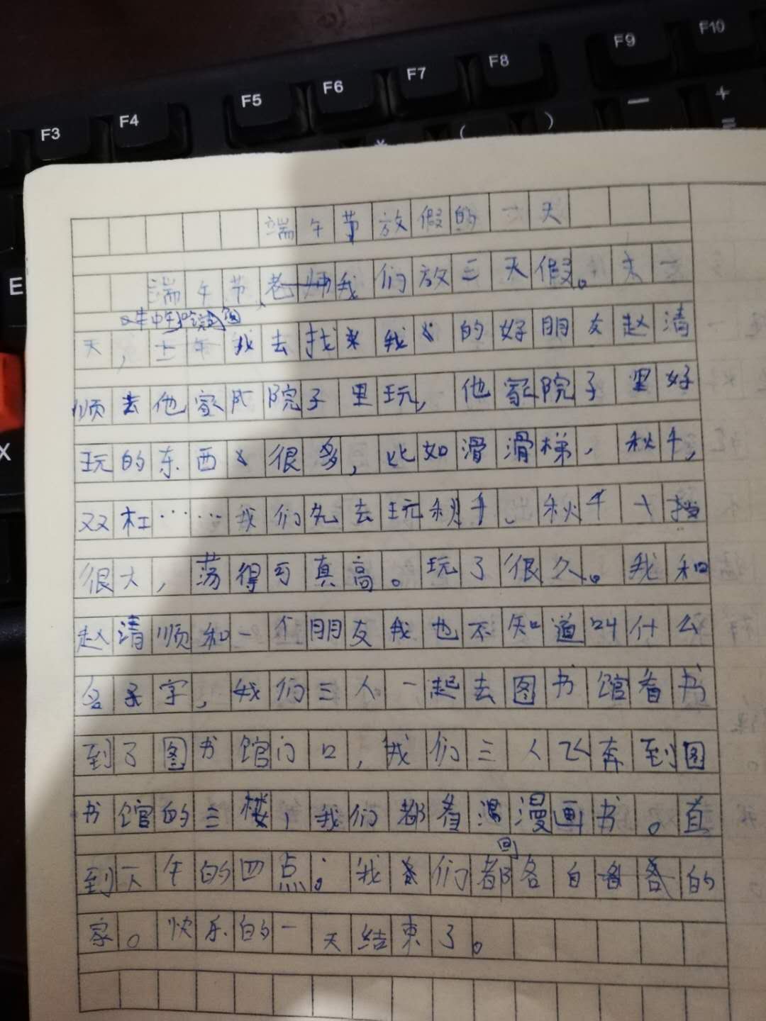 端午节放假的一天 热539 类别:原创 发表时间:2019-06-09 18:56 已有 540 次阅读 指导老师:徐晶华 所属学校:金水区黄河路第一小学
