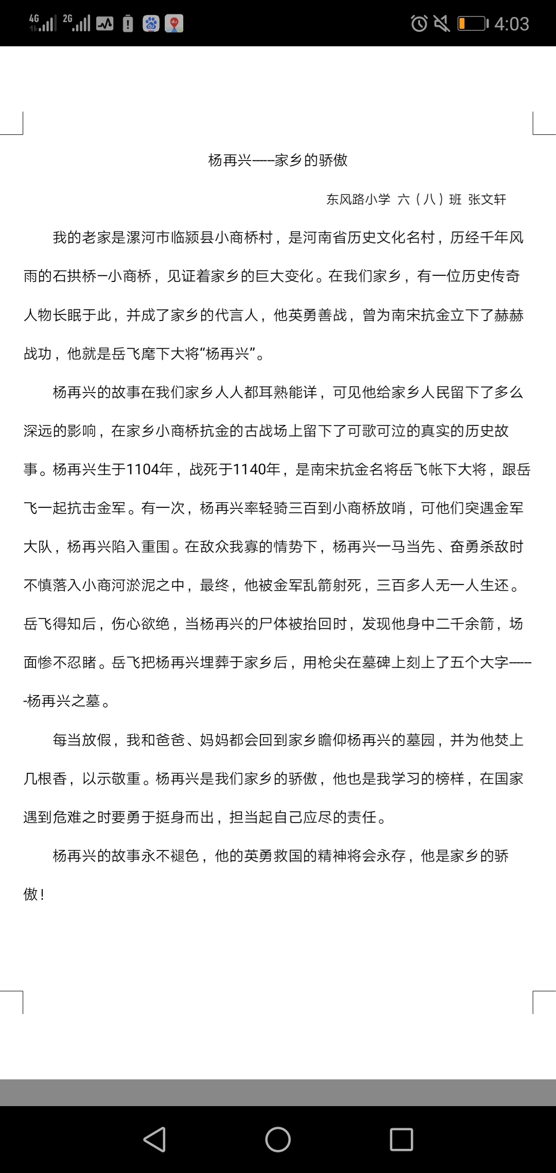 杨再兴 ---家长的骄傲 热1886 类别:原创 发表时间:2019-10-10 16:06 已有 1886 次阅读 指导老师:崔慧玲 所属学校:郑州市惠济区东风路小学