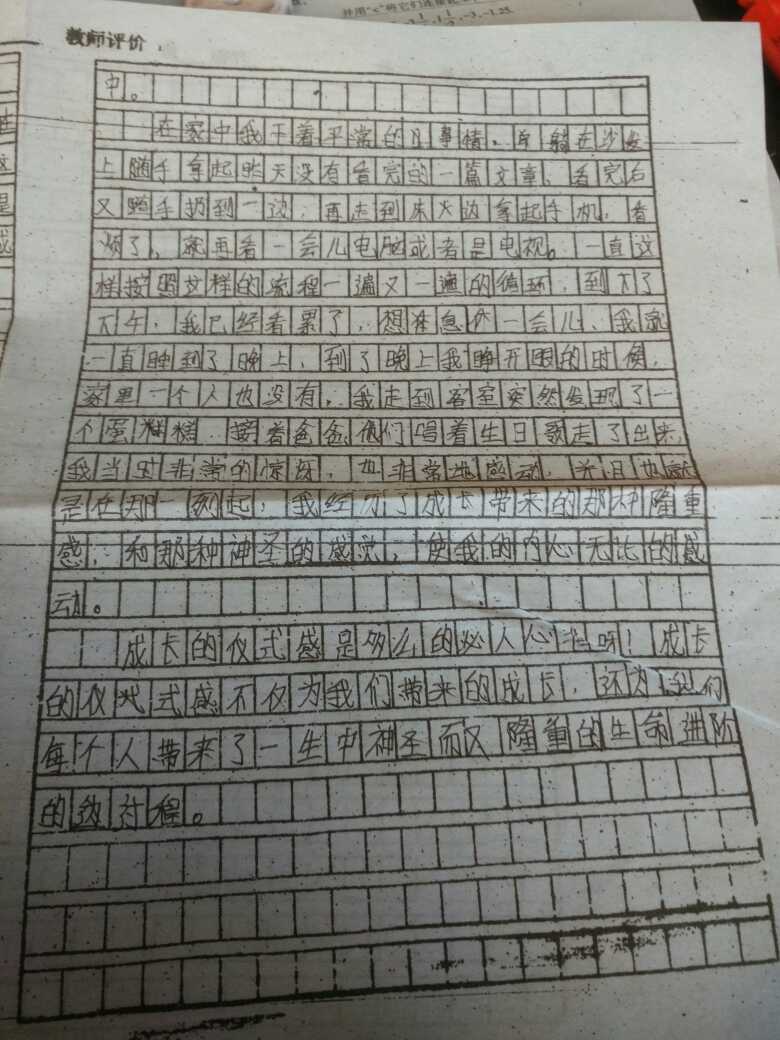 成长的仪式感 热831 类别:抒情 发表时间:2018-10-02 08:57 已有 832 次阅读 指导老师:孙书建 所属学校:登封市大金店梅村初中