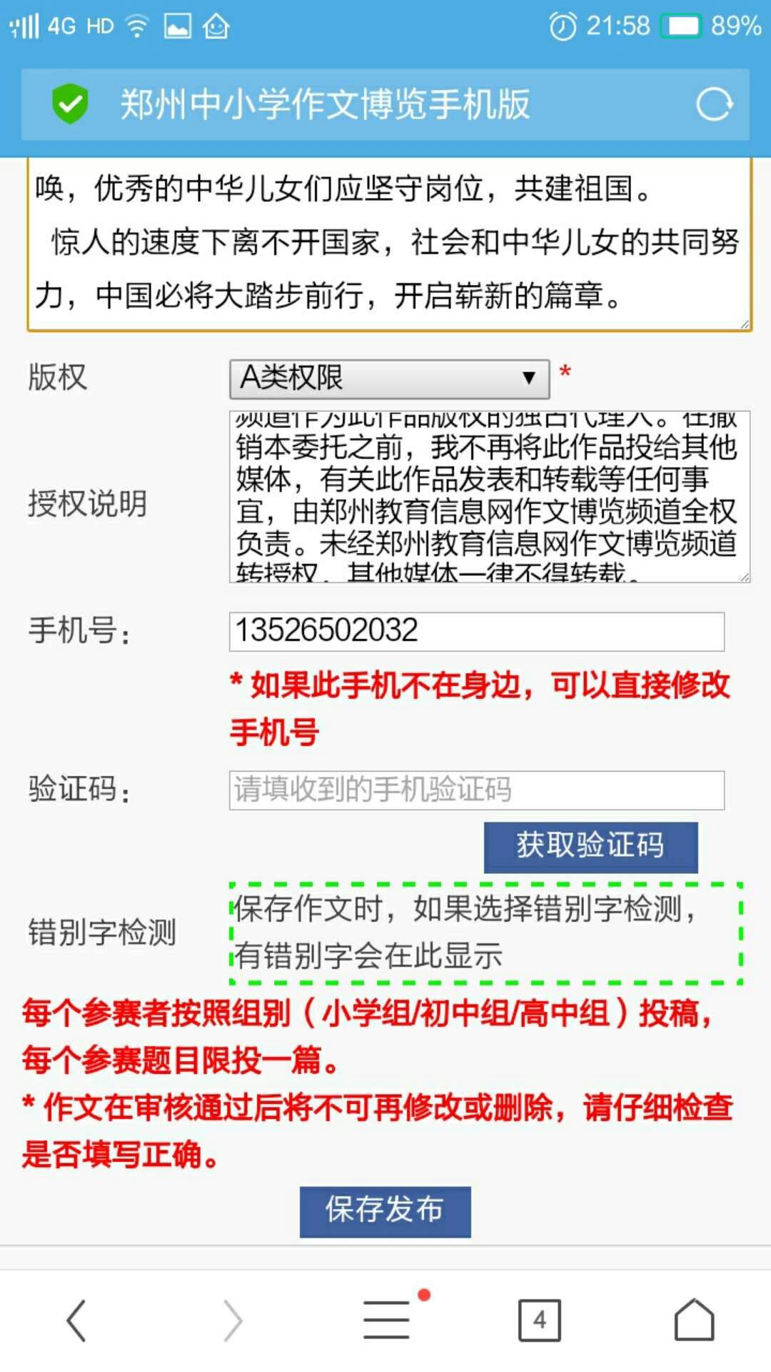 版权说明: A类权限 我谨保证我是此作品的著作权人,并且此作品系首发于郑州教育信息网作文博览频道。我同意郑州教育信息网作文博览频道作为此作品版权的独占代理人。在撤销本委托之前,我不再将此作品投给其他媒体,有关此作品发表和转载等任何事宜,由郑州教育信息网作文博览频道全权负责。未经郑州教育信息网作文博览频道转授权,其他媒体一律不得转载。 |