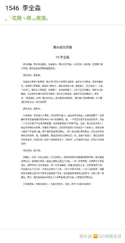 通向成功的路 热296 类别:议论 发表时间:2018-09-24 15:13 已有 297 次阅读 指导老师:肖老师 所属学校:荥阳市高级中学