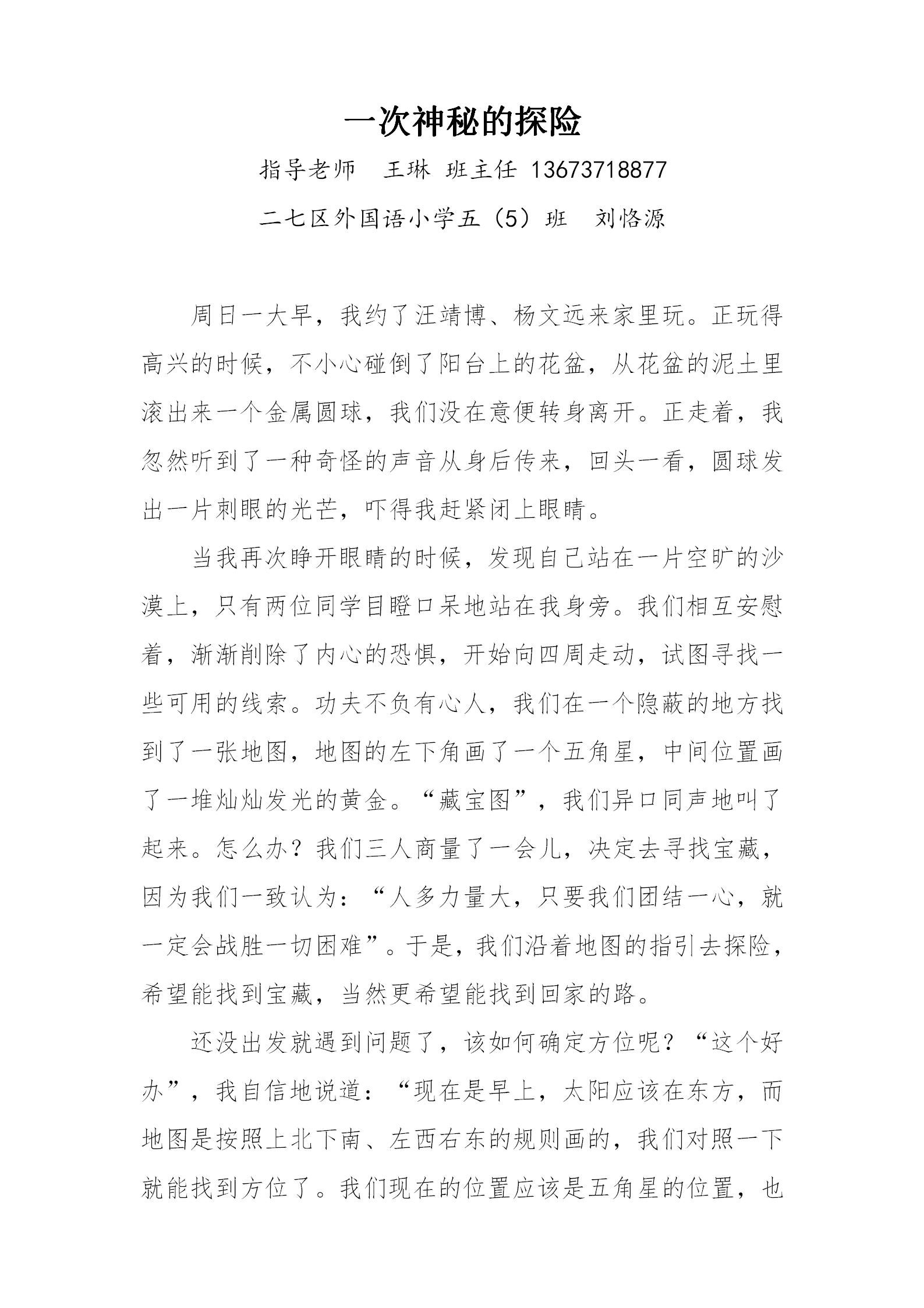 一次神秘的探险 热713 类别:原创 发表时间:2020-10-30 09:22 已有 714 次阅读 指导老师:王琳 所属学校:郑州市二七区外国语小学