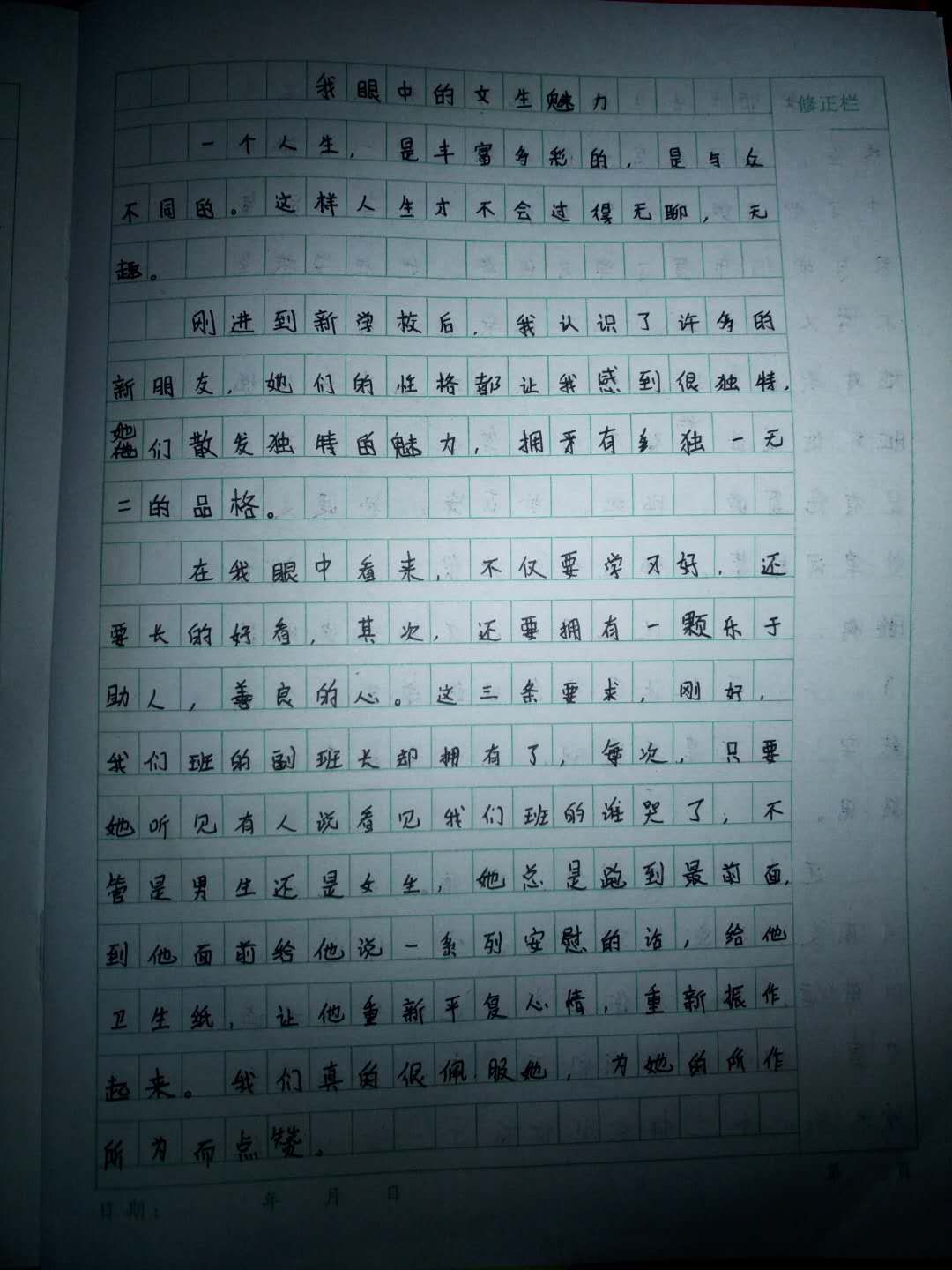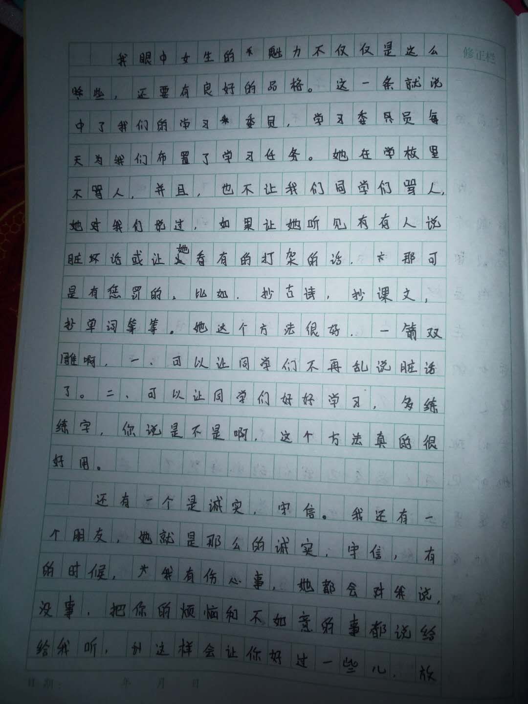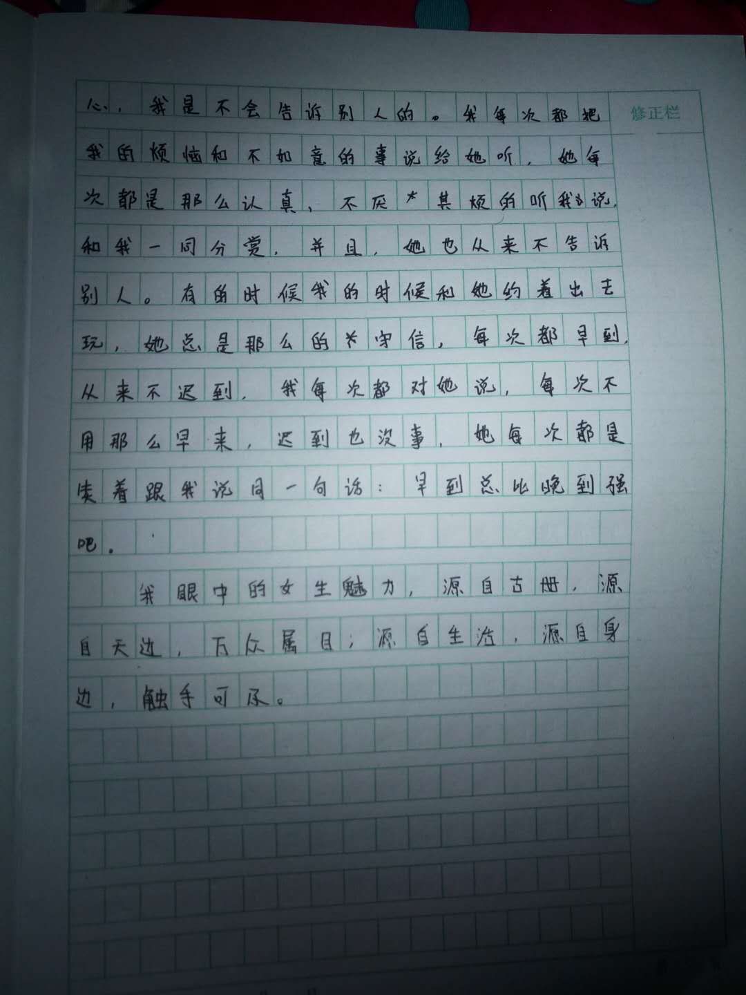 我眼中的女生魅力 热555 类别:写人 发表时间:2018-09-24 15:08 已有 556 次阅读 指导老师:张建军 所属学校:登封新区中强学校
