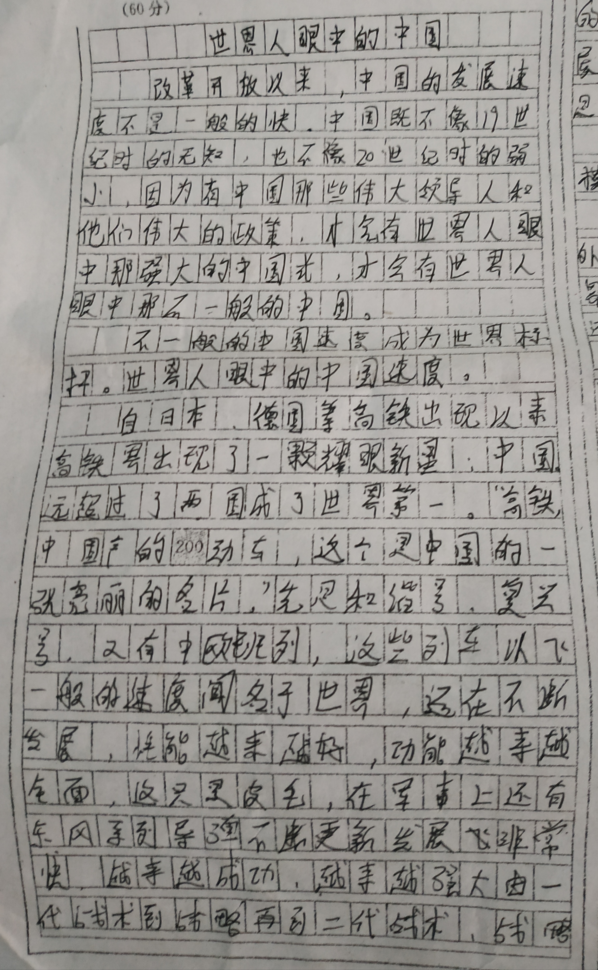 世界人眼中的中国 热650 类别:议论 发表时间:2018-10-04 10:17 已有 651 次阅读 指导老师:蔡江艺 所属学校:荥阳市高级中学