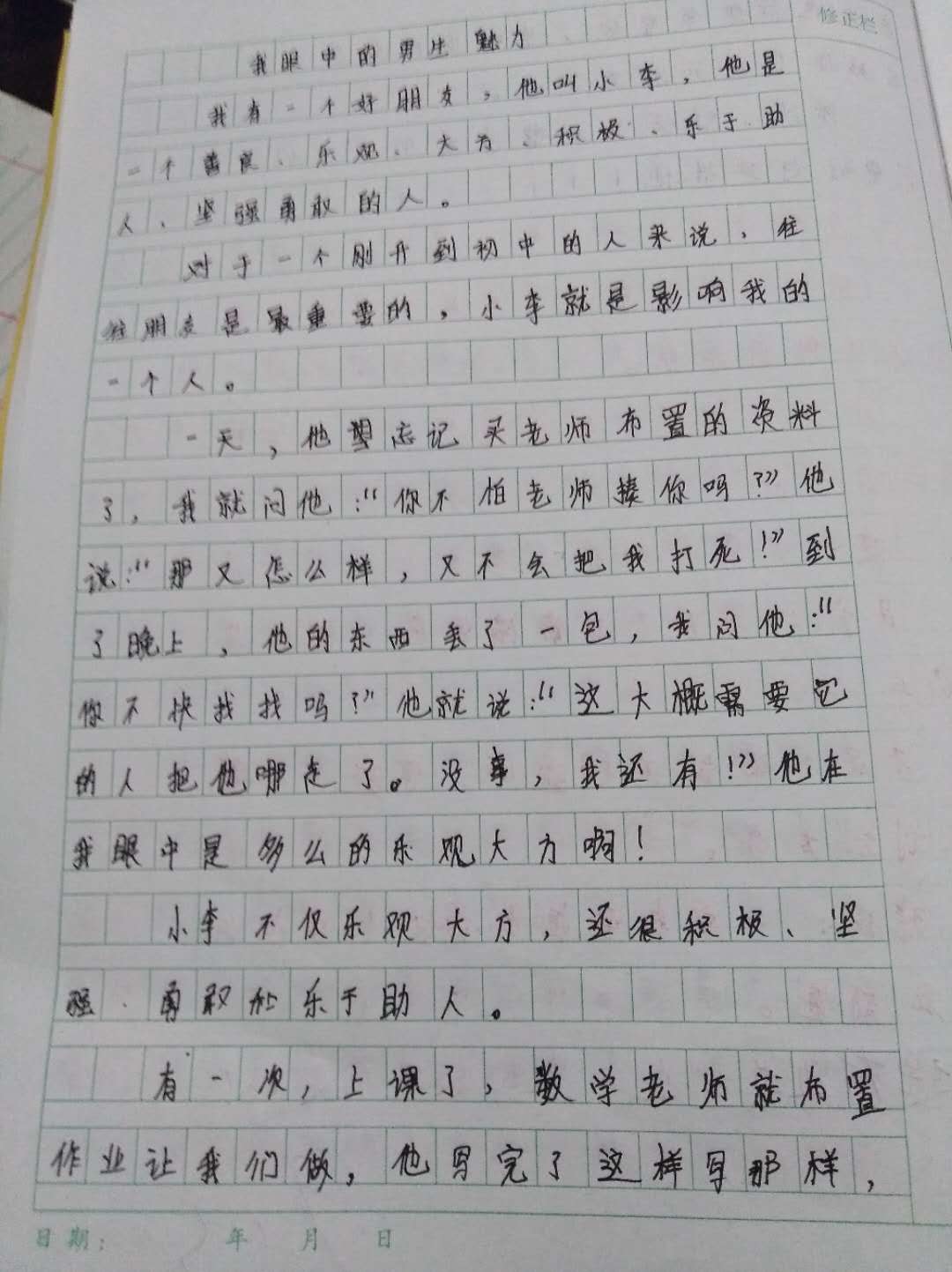 我眼中的男生魅力 热381 类别:写人 发表时间:2018-09-24 19:43 已有 382 次阅读 指导老师:张会晓 所属学校:登封市中岳中心学校