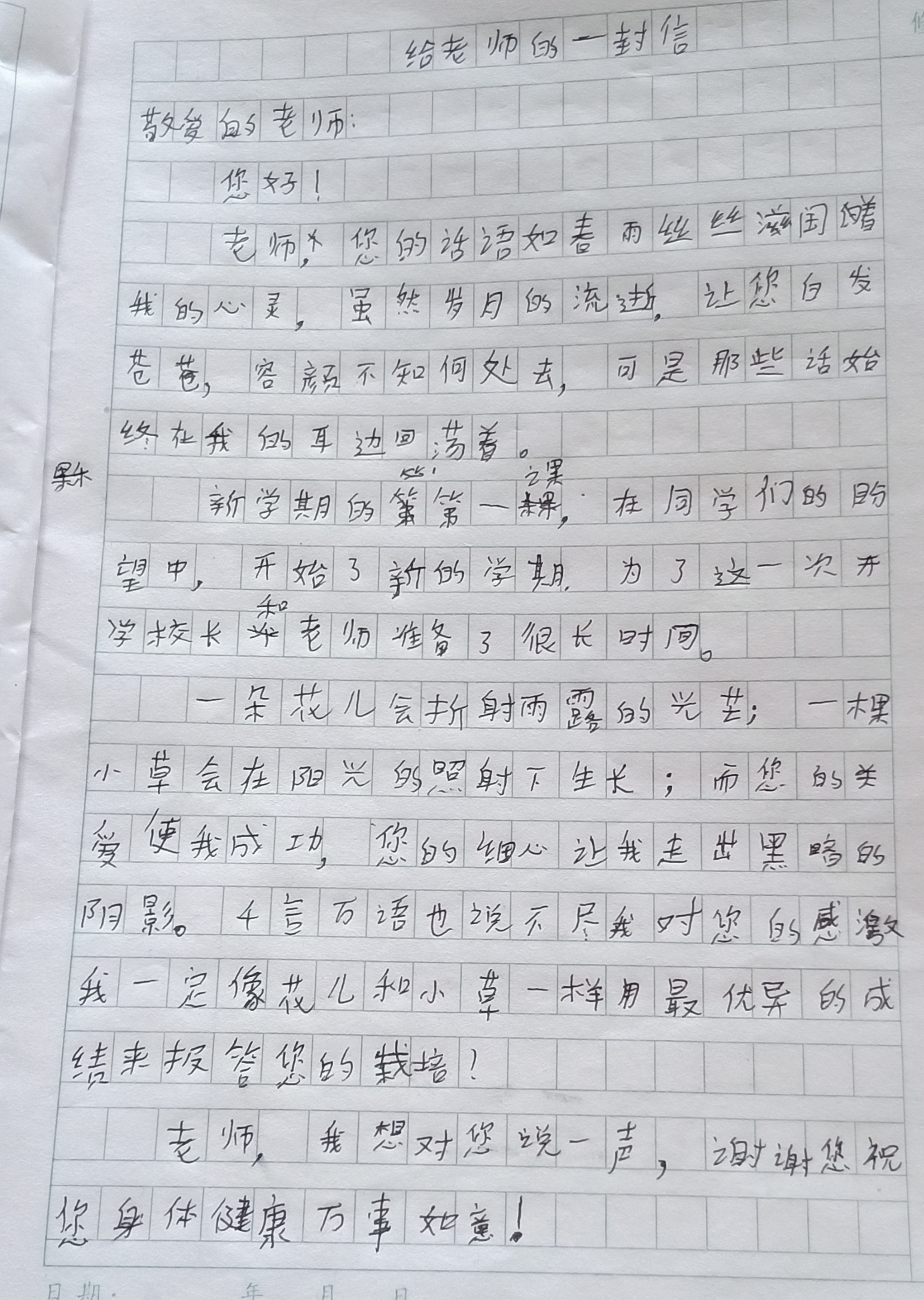 给老师的一封信 热988 类别:抒情 发表时间:2020-09-13 13:10 已有 989 次阅读 指导老师:张东格 所属学校:登封市中岳街道办事处中心小学