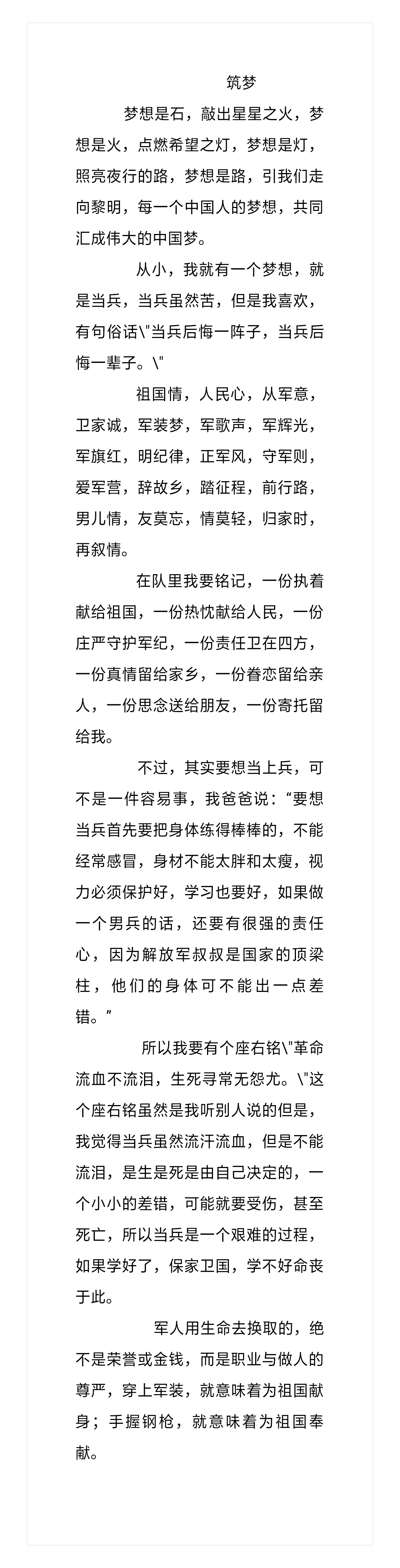 筑梦 热346 类别:抒情 发表时间:2019-09-08 18:42 已有 347 次阅读 指导老师:张会晓 所属学校:登封新区中强学校