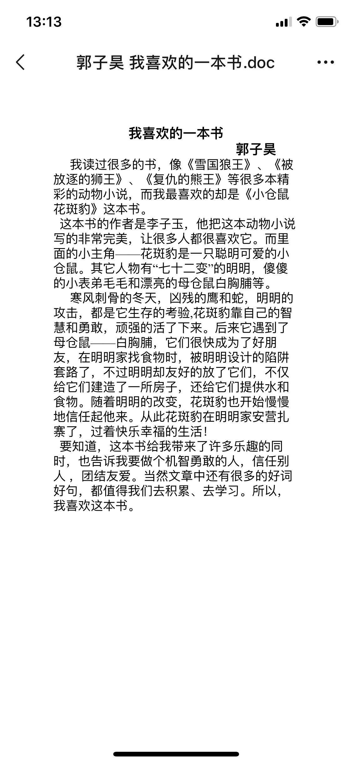 我喜欢的一本书 热622 类别:状物 发表时间:2019-10-14 13:22 已有 623 次阅读 指导老师:孙同焕老师 所属学校:滨河第一小学