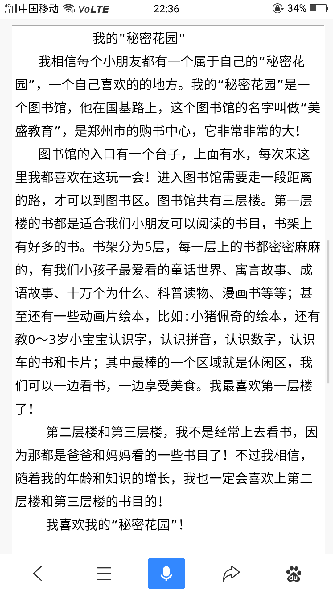 我的秘密花园 热236 类别:应用 发表时间:2018-09-26 22:43 已有 237 次阅读 指导老师:王淑娜 所属学校:郑州市惠济区东风路小学
