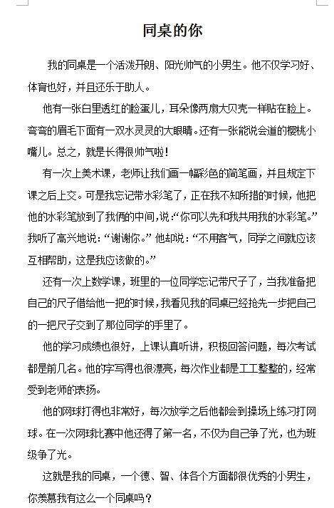 同桌的你 热340 类别:写人 发表时间:2018-09-29 16:00 已有 341 次阅读 指导老师:陈丽娟 所属学校:经开区瑞锦小学